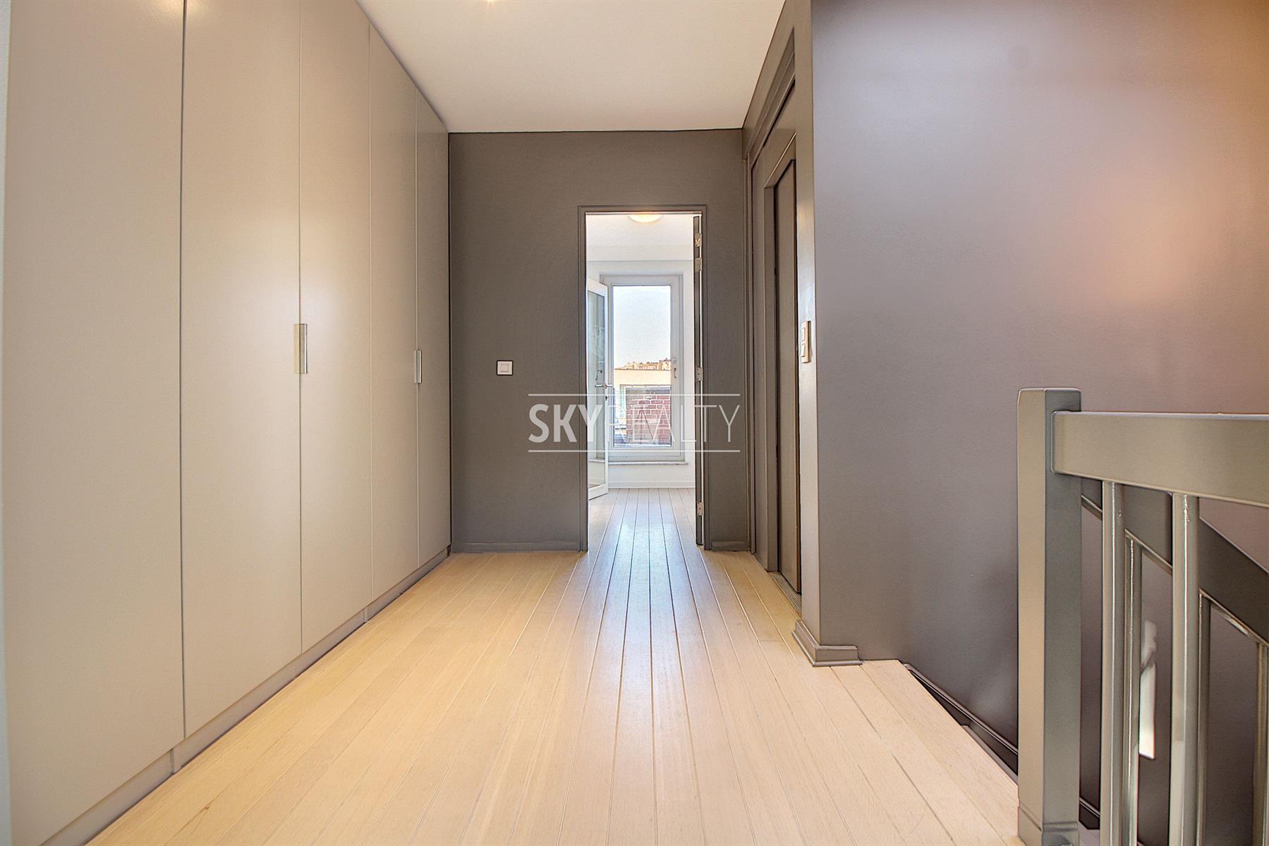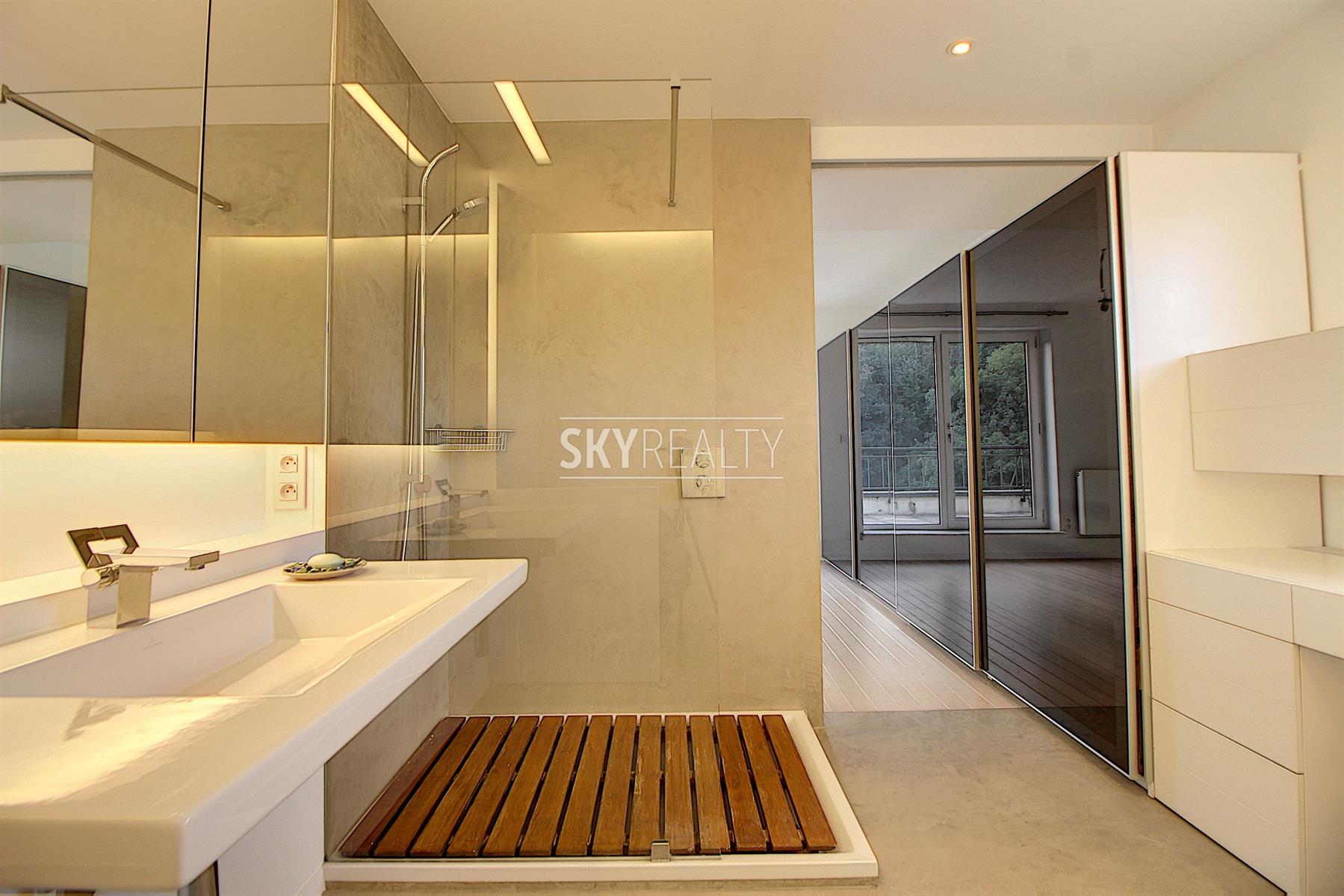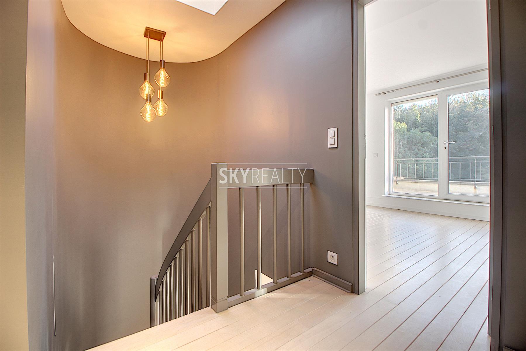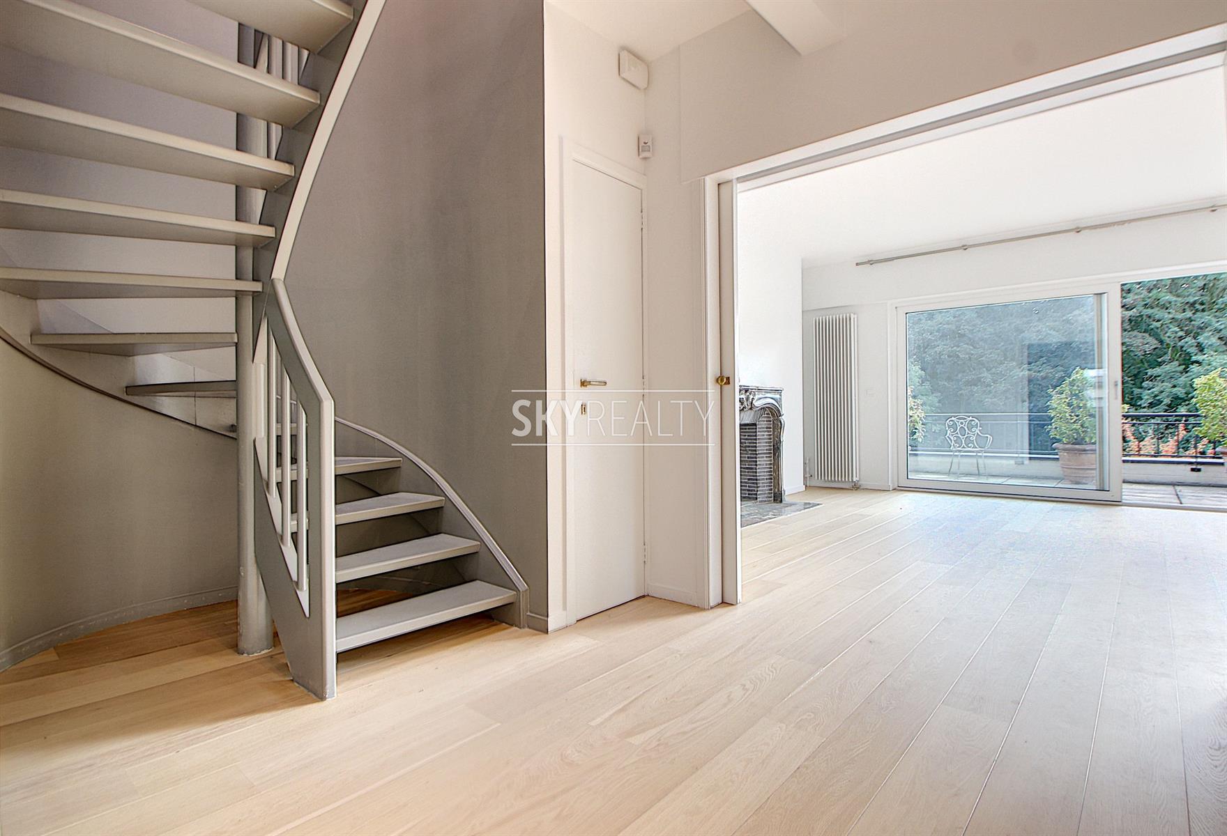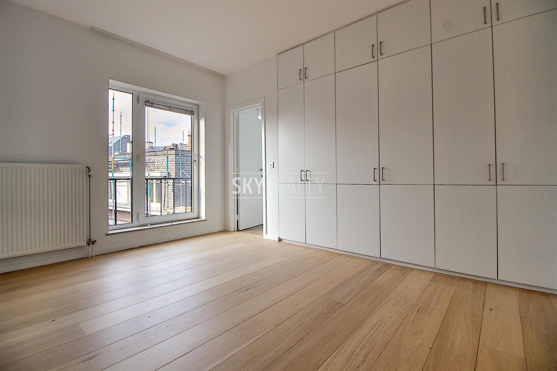 Square des Milliardaires | Square du Bois | Avenue Louise: À l'orée du bois de la Cambre, à coté de toutes les facilités de l'Avenue Louise, ce splendide duplex penthouse 3 chambres de ± 210 m² aux derniers étages d'une maison bourgeoise vous enchantera par la quiétude des lieux, ses pièces de vie et ses terrasses exposées plein sud ansi que par sa localisation unique dans le clos privé le plus select de Belgique. Il offre: au 2e étage: un ascenseur privatif arrivant dans l'appartement, un vestiaire, une toilette invités, un spacieux et lumineux living (feu ouvert fonctionnel) s'ouvrant vers une agréable terrasse exposée sud (jolie vue arborée), une salle à manger (ou bureau), une grande cuisine super-équipée, une chambre (garde-robe sur-mesure) avec salle de bain en suite (bain, lavabo double vasque, toilette et bidet séparés); au 3e étage: ascenseur privatif, hall de nuit avec dressing, la chambre parentale (avec garde-robe) s'ouvrant vers une deuxième terrasse exposée sud, une SDB en suite (douche, lavabo, toilette, bidet), une 3e chambre, une salle de douche (toilette, lavabo et une buanderie équipée), une 3e terrasse en façade avant avec jolie vue sur le Square. Air-conditionné, alarme, video-surveillance. Trois façades (belle luminosité). Clos privé ultra sécurisé. Loyer: 3500 € + 200 € (forfait pour les communs et l'eau froide). 1 parking extérieur (inclus). Parking(s) couvert(s): option: +150 €/lot. Un excellent rapport qualité pour cette localisation hors du commun.