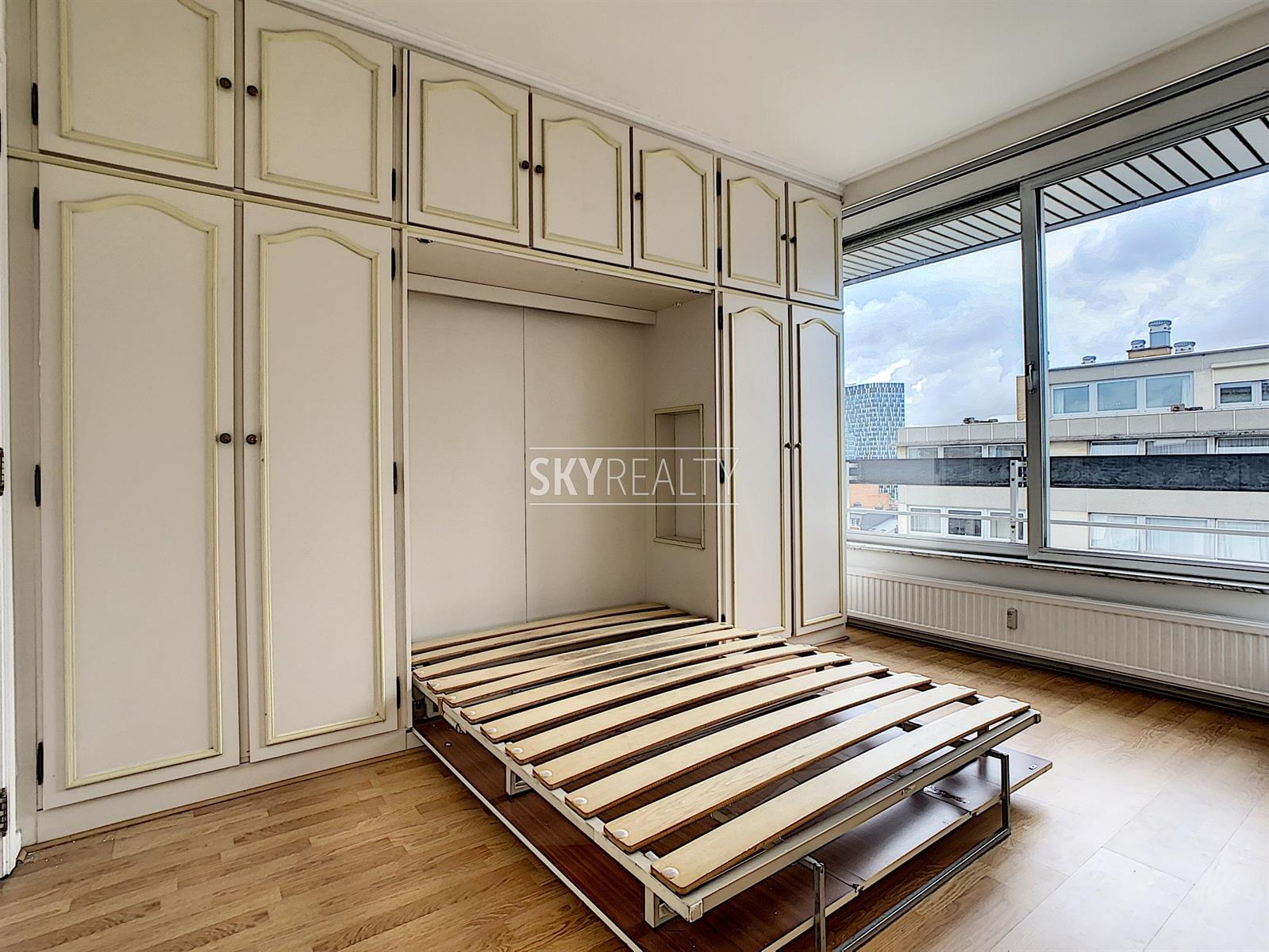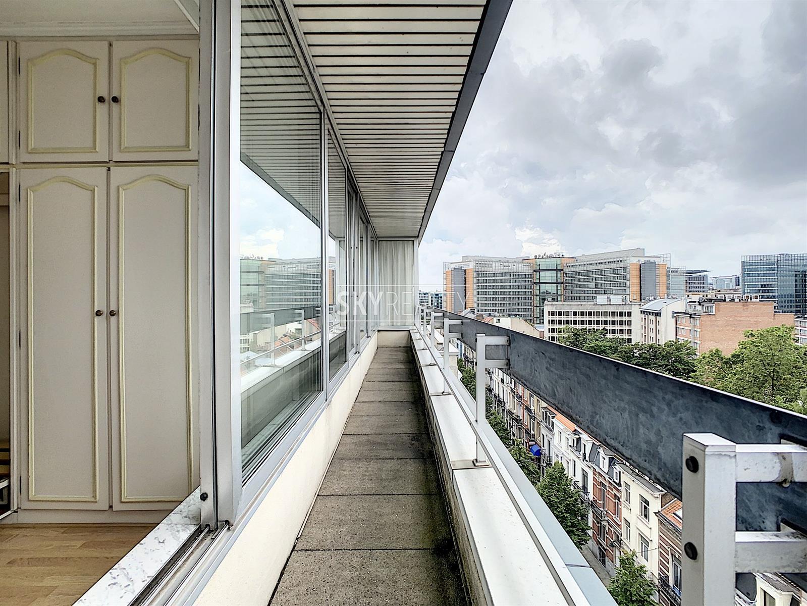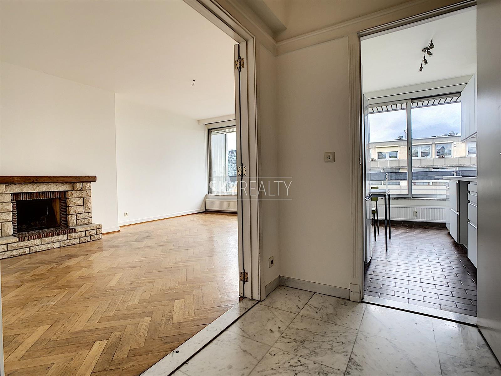 SCHUMAN | QUARTIER EUROPEEN | SQUARE AMBIORIX: Nous vous présentons en exclusivité cet agréable appartement 1 chambre (non meublé) de ± 60 m² au 10e et dernier étage d'un immeuble de standing. Il offre une magnifique vue sur le parc Ambiorix et bénéficie d'une localisation idéale à coté des transports, des commerces, des bars, des restaurants et toutes les facilités. Il comprend: un hall d'entrée (marbre au sol) avec vestiaire, un spacieux living de 30 m² avec feu ouvert et parquet (exposition ouest offrant une belle luminosité en après-midi/soirée), une grande cuisine séparée super équipée (nouvelle cuisine - première utilisation après installation et comprenant: réfrigérateur-surgélateur, taque vitro, hotte, four, lave-vaisselle, machine à laver), une grande chambre de 13 m² avec lit & garde-robes inclus (parquet au sol), une SDB, une toilette séparée. Une terrasse sur toute la longueur de l'appartement (somptueux couchers de soleil) + accès discret au rooftop ! 1 emplacement de parking inclus obligatoire (sous location ok). Une adresse prisée à 300m pas de Schuman (Métro - Gare - Taxis - Villo - Cambio - STIB Airport Line). Accès aisé aux grands axes autoroutiers. Le Parc du Cinquantenaire est à 3 minutes à pied. Un quartier sécurisé, verdoyant, et très agréable à vivre. Libre immédiatement. Bail de minimum de 1 année. Loyer 800 € + 100 € (PARKING OBLIGATOIRE - SOUS LOCATION OK) + 140 € de charges (provision pour l'eau, le chauffage et l'entretien des parties communes).