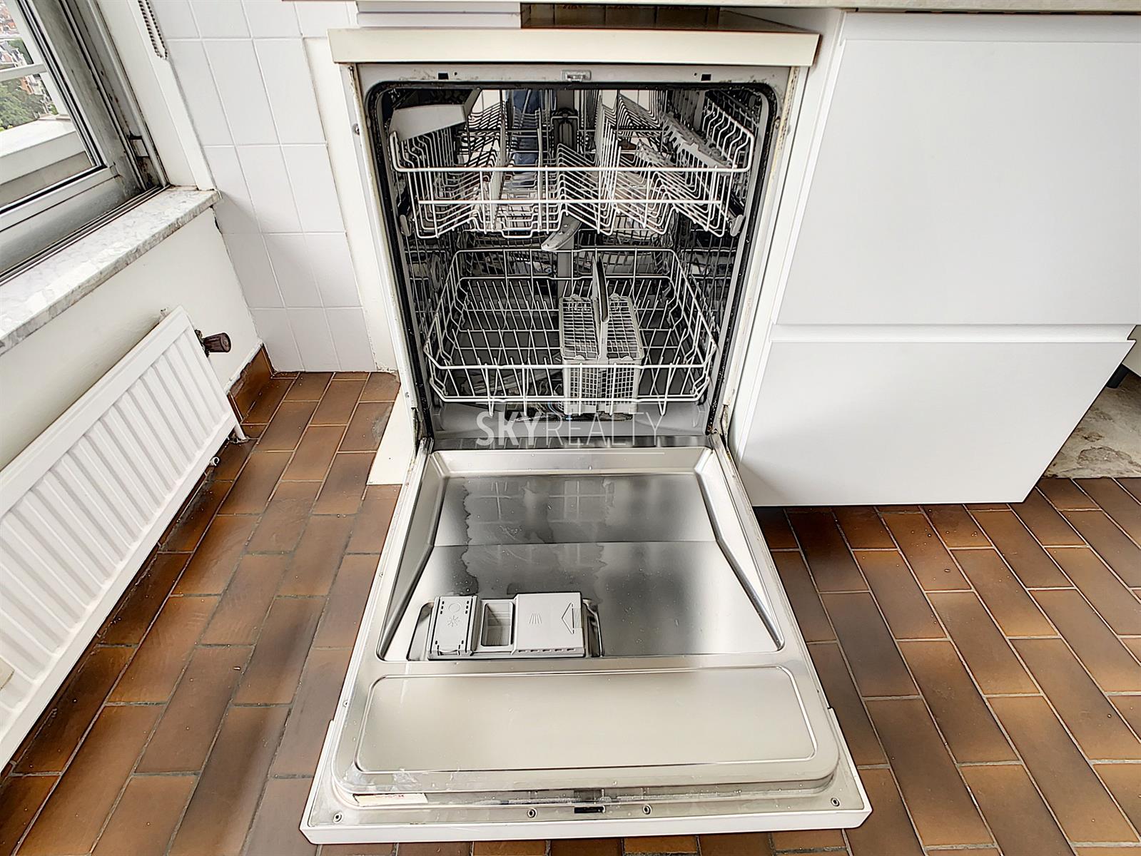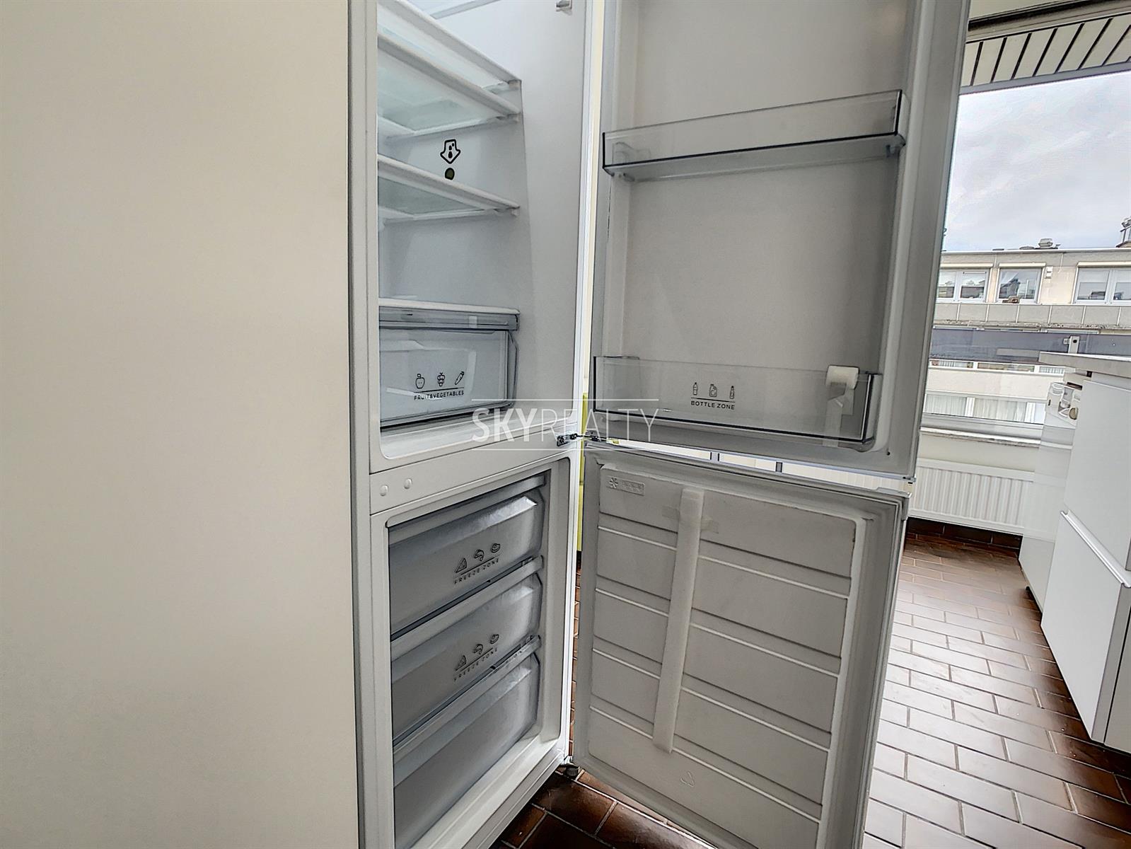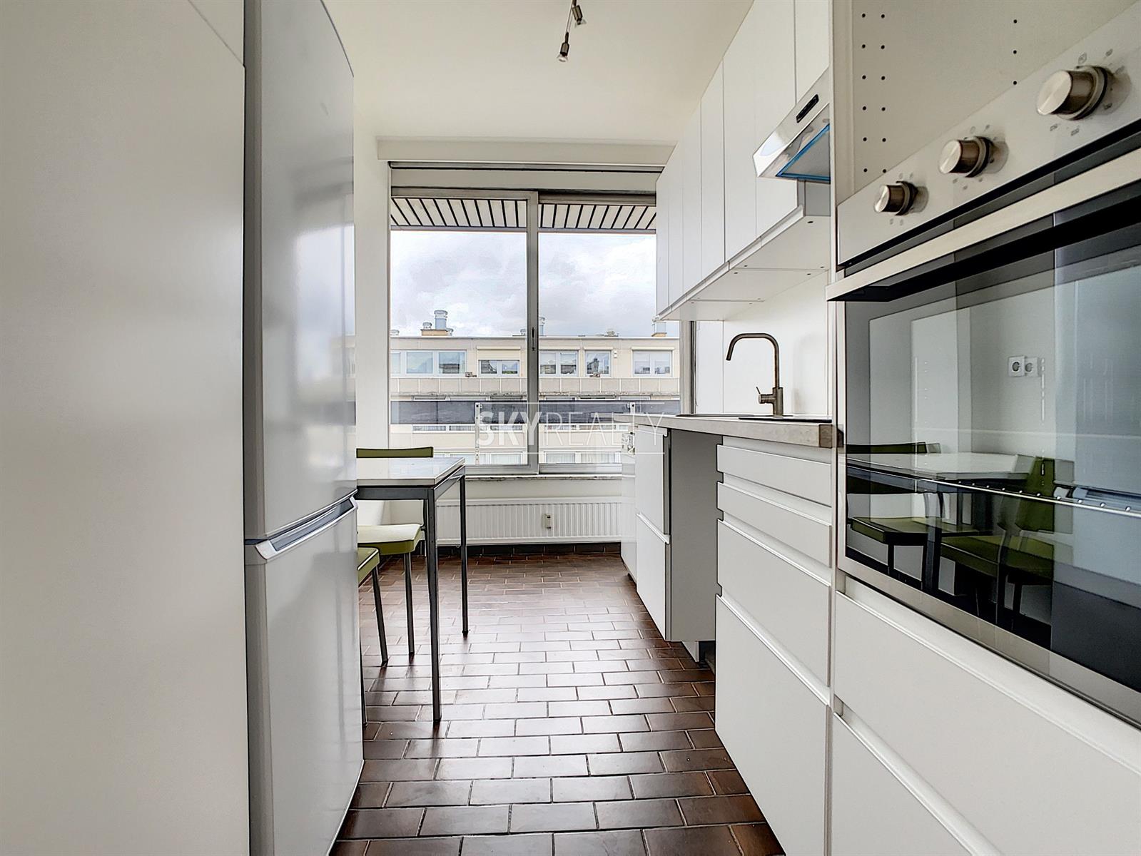 SCHUMAN | QUARTIER EUROPEEN | SQUARE AMBIORIX: Nous vous présentons en exclusivité cet agréable appartement 1 chambre (non meublé) de ± 60 m² au 10e et dernier étage d'un immeuble de standing. Il offre une magnifique vue sur le parc Ambiorix et bénéficie d'une localisation idéale à coté des transports, des commerces, des bars, des restaurants et toutes les facilités. Il comprend: un hall d'entrée (marbre au sol) avec vestiaire, un spacieux living de 30 m² avec feu ouvert et parquet (exposition ouest offrant une belle luminosité en après-midi/soirée), une grande cuisine séparée super équipée (nouvelle cuisine - première utilisation après installation et comprenant: réfrigérateur-surgélateur, taque vitro, hotte, four, lave-vaisselle, machine à laver), une grande chambre de 13 m² avec lit & garde-robes inclus (parquet au sol), une SDB, une toilette séparée. Une terrasse sur toute la longueur de l'appartement (somptueux couchers de soleil) + accès discret au rooftop ! 1 emplacement de parking inclus obligatoire (sous location ok). Une adresse prisée à 300m pas de Schuman (Métro - Gare - Taxis - Villo - Cambio - STIB Airport Line). Accès aisé aux grands axes autoroutiers. Le Parc du Cinquantenaire est à 3 minutes à pied. Un quartier sécurisé, verdoyant, et très agréable à vivre. Libre immédiatement. Bail de minimum de 1 année. Loyer 800 € + 100 € (PARKING OBLIGATOIRE - SOUS LOCATION OK) + 140 € de charges (provision pour l'eau, le chauffage et l'entretien des parties communes).