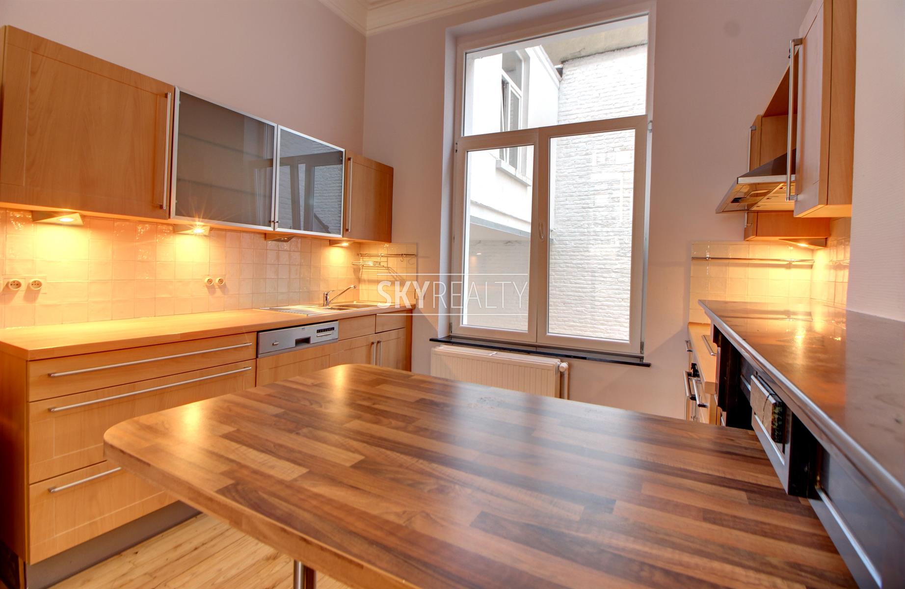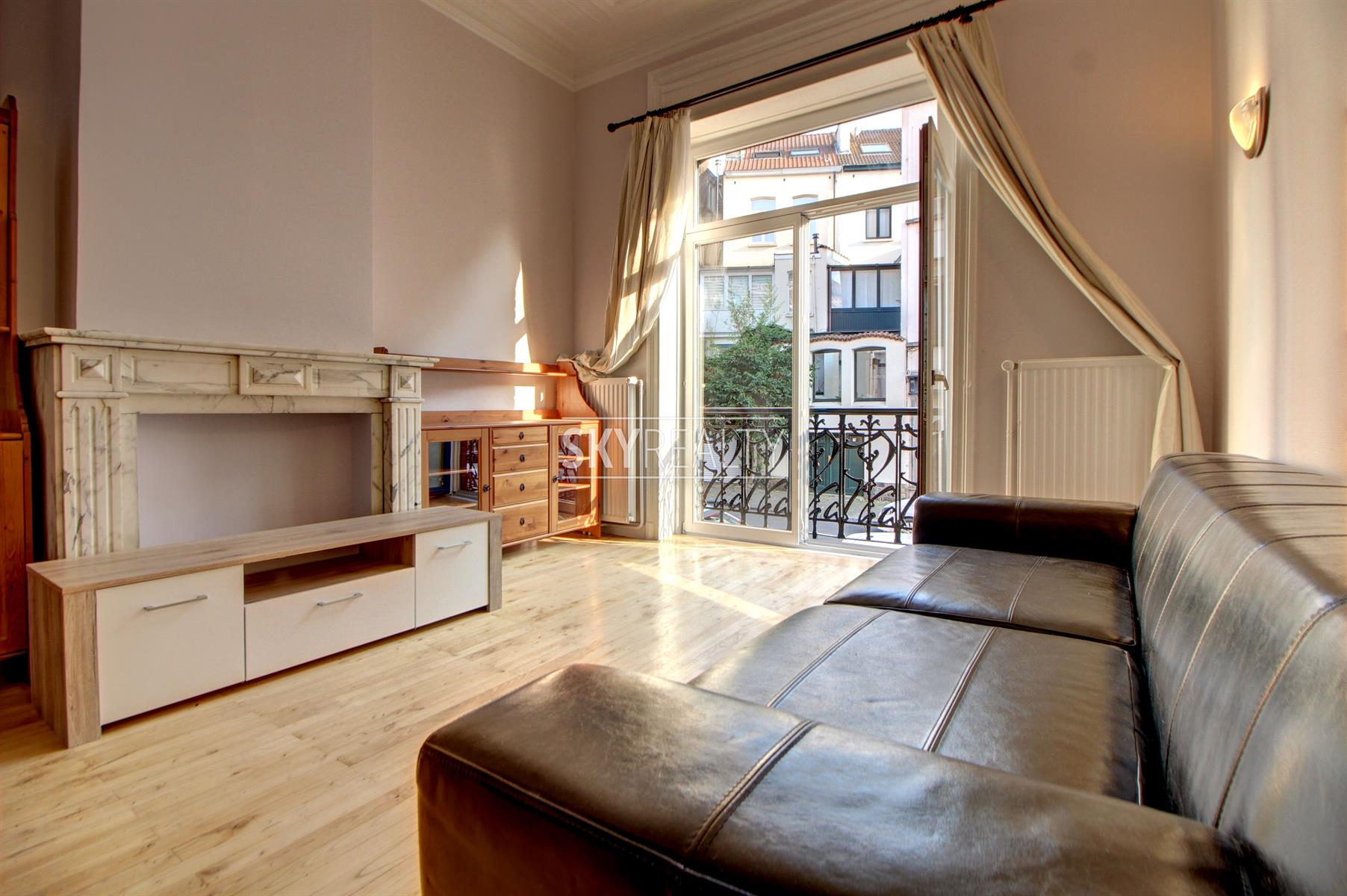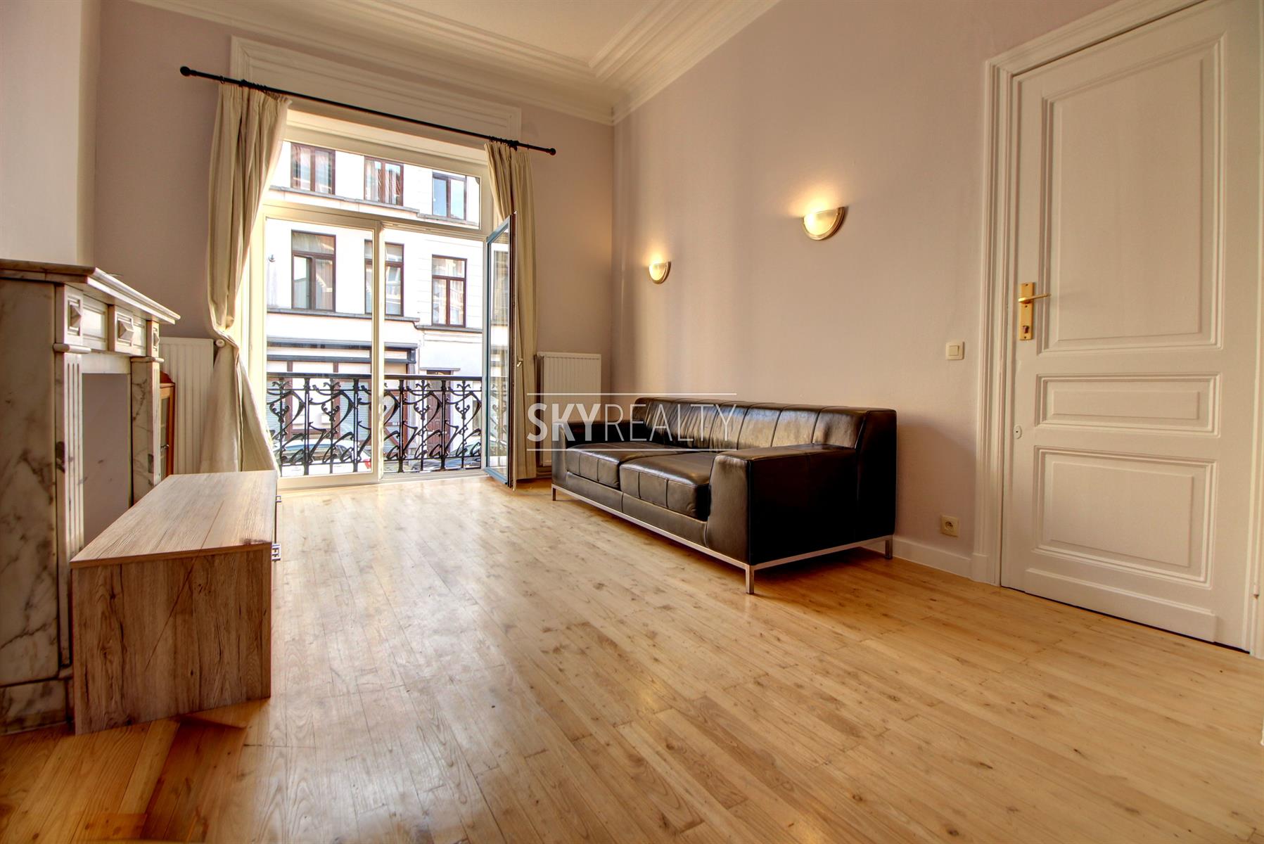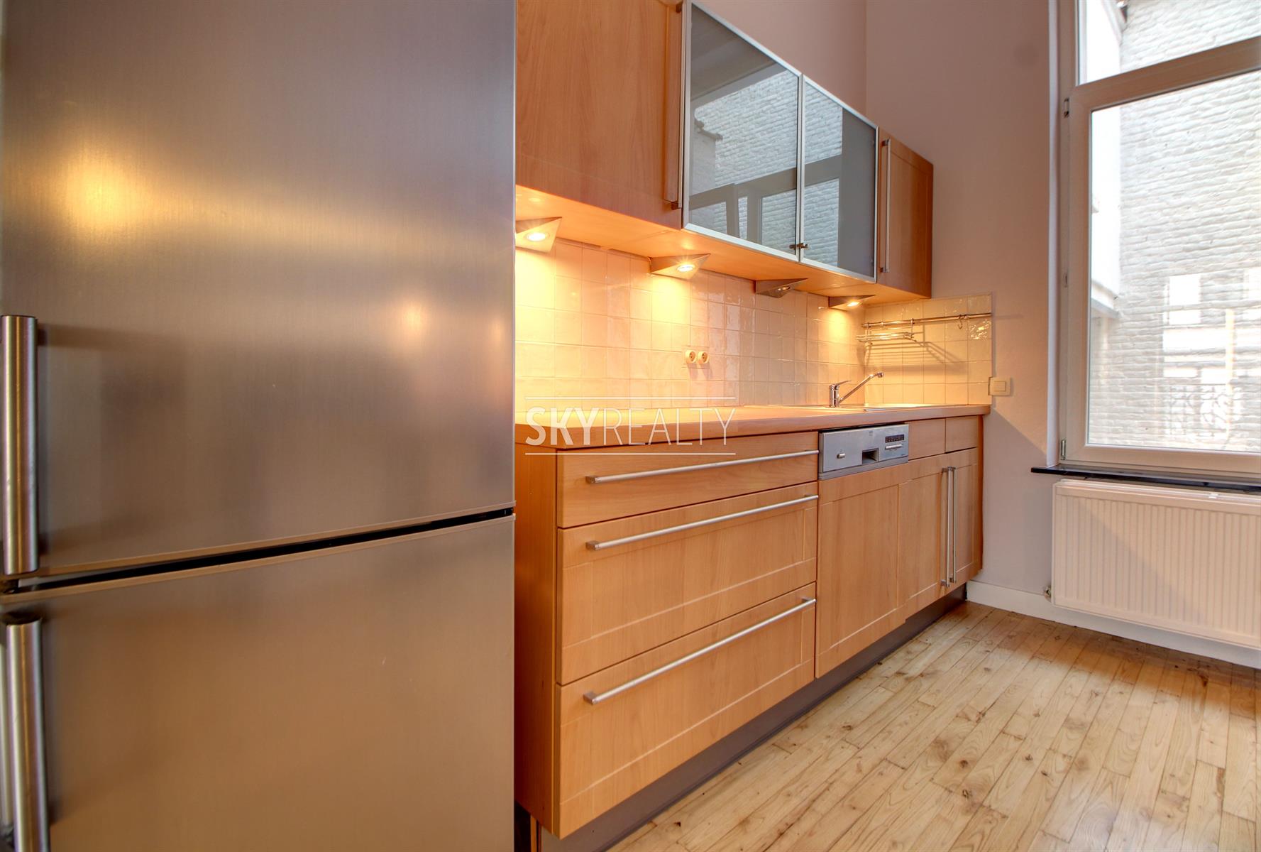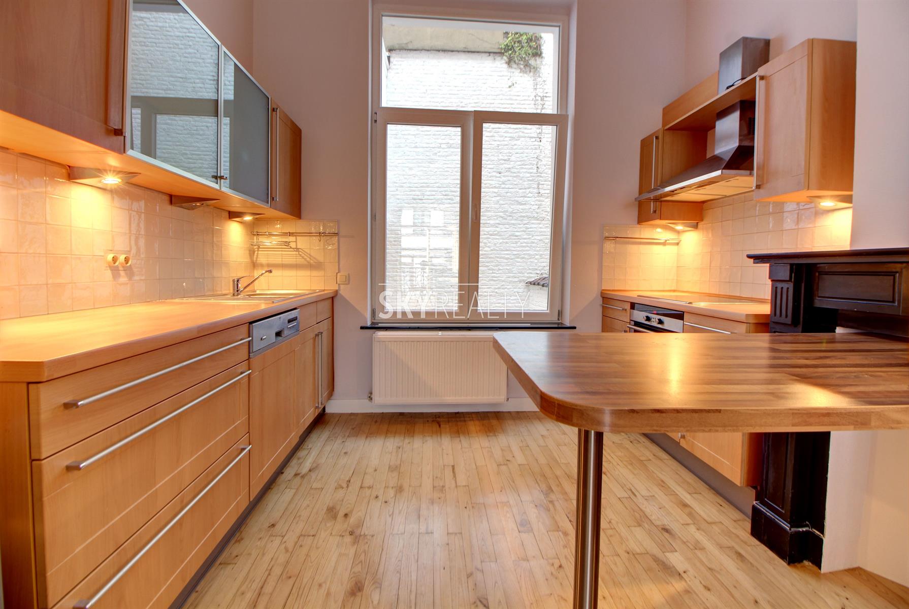 SCHUMAN | QUARTIER EUROPEEN: Sky Realty vous présente ce charmant duplex 2 chambres entièrement meublé et récemment rénové de ± 90 m² sis au rez-de-chaussée d'une belle maison de maître. Il comprend: un living lumineux exposé sud, une cuisine ouverte hyper-équipée (taque vitro-céramique, hotte, four, réfrigérateur, lave-vaisselle); au niveau inférieur, deux chambres, une salle de bain (douche, lavabo, toilette) et une buanderie équipée avec machine à laver. Accès à une grande terrasse privative. Meublé avec ustensiles de cuisine, couette, coussin, aspirateur, fer et table à repasser, etc. Entièrement rénové en 2017 (nouvelles cuisine, SDB, peintures; nouveaux sols, double vitrage, etc.). Un appartement calme, lumineux et agréable à vivre jouissant d'une localisation parfaite à deux pas de Schuman (Métro - Bus - Gare - STIB Airport/Nato Line - Taxis - Cambio - Villo) avec tous les services à proximité: cafés, restaurants, petits commerces, supermarchés, etc. Accès aisé aux grands axes autoroutiers. Le Parc du Cinquantenaire est à 4 minutes à pied. Libre 1er septembre 2021. Bail de minimum 1 année. Loyer 950 € + seulement 200 € de FORFAIT ALL IN pour les charges (chauffage, eau chaude/froide, entretien des communs, chaînes TV via le cable, internet, électricité de l'appartement et assurance responsabilité locative incluse via l'assurance du propriétaire avec abandon de recours). Colocation acceptée. Infos via le bouton *** contacter par email *** de l'annonce.