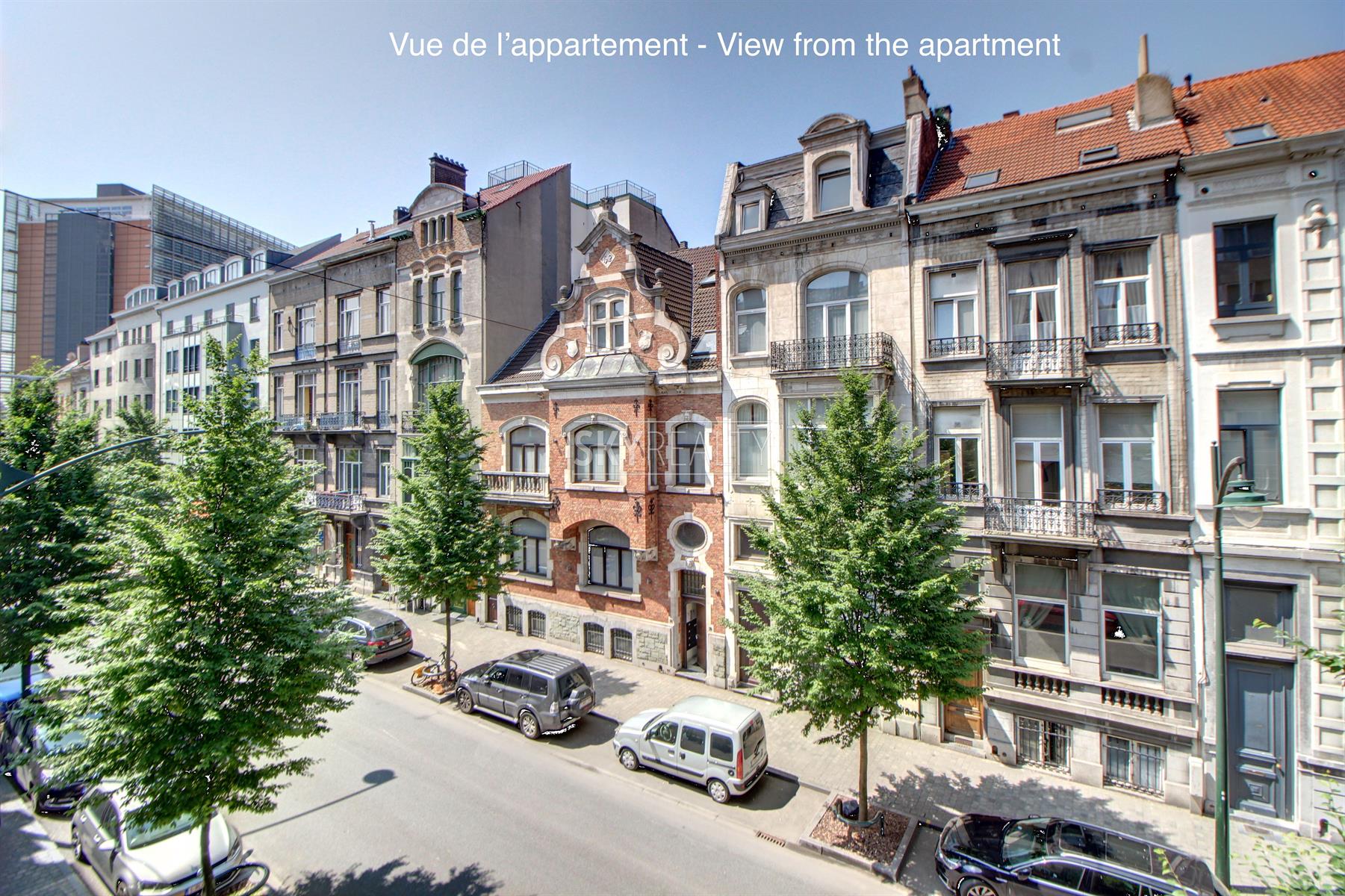 SCHUMAN | QUARTIER UE: Sky Realty a le plaisir de vous présenter en exclusivité ce magnifique appartement (1 CH. / 1 SDB) entièrement meublé de ± 60 m² situé aux 2e étage / 3 (avec ascenseur) d’une belle maison de maître. Il offre: accès un ascenseur, un hall d'entrée, une living de ± 30 m² donnant accès à une agréable terrasse à l'arrière (jolie vue sur les jardins), une cuisine séparée super-équipée (taque vitro-céramique, hotte, four, lave-vaisselle, etc.), 1 chambre de 16 m², 1 SDB (bain, lavabo, toilette, machine à laver). Beau plancher, hauts plafonds, chassis bois, plusieurs éléments décoratifs d'époque ont été conservés. Double vitrage partout. Un appart agréable à vivre et une localisation prisée à deux pas de Schuman (Métro - Gare - Taxis - Villo - Cambio - STIB Airport Line) avec tous les services à proximité: restaurants, cafés, supermarchés, commerces, banques, pharmacies, poste, centre de fitness et médical. Accès aisé aux grands axes autoroutiers. Le Parc du Cinquantenaire est à 3 minutes à pied. Un quartier vivant, verdoyant et sécurisé. Libre 15 février 2023. Bail minimum 1 année. Loyer 950€ + 90€ de charges (= 40 € de forfait pour l'entretien des communs & 50 € de provision pour l'eau). Idéal pour un célibataire. Le gaz (chauffage avec chaudière individuelle & taque au gaz pour la cuisine), l'électricité et l'internet sont à charge du preneur. Visites: Envoyez S.V.P. un message via le bouton *** Contacter par e-mail *** présent sur la page web de l'annonce.