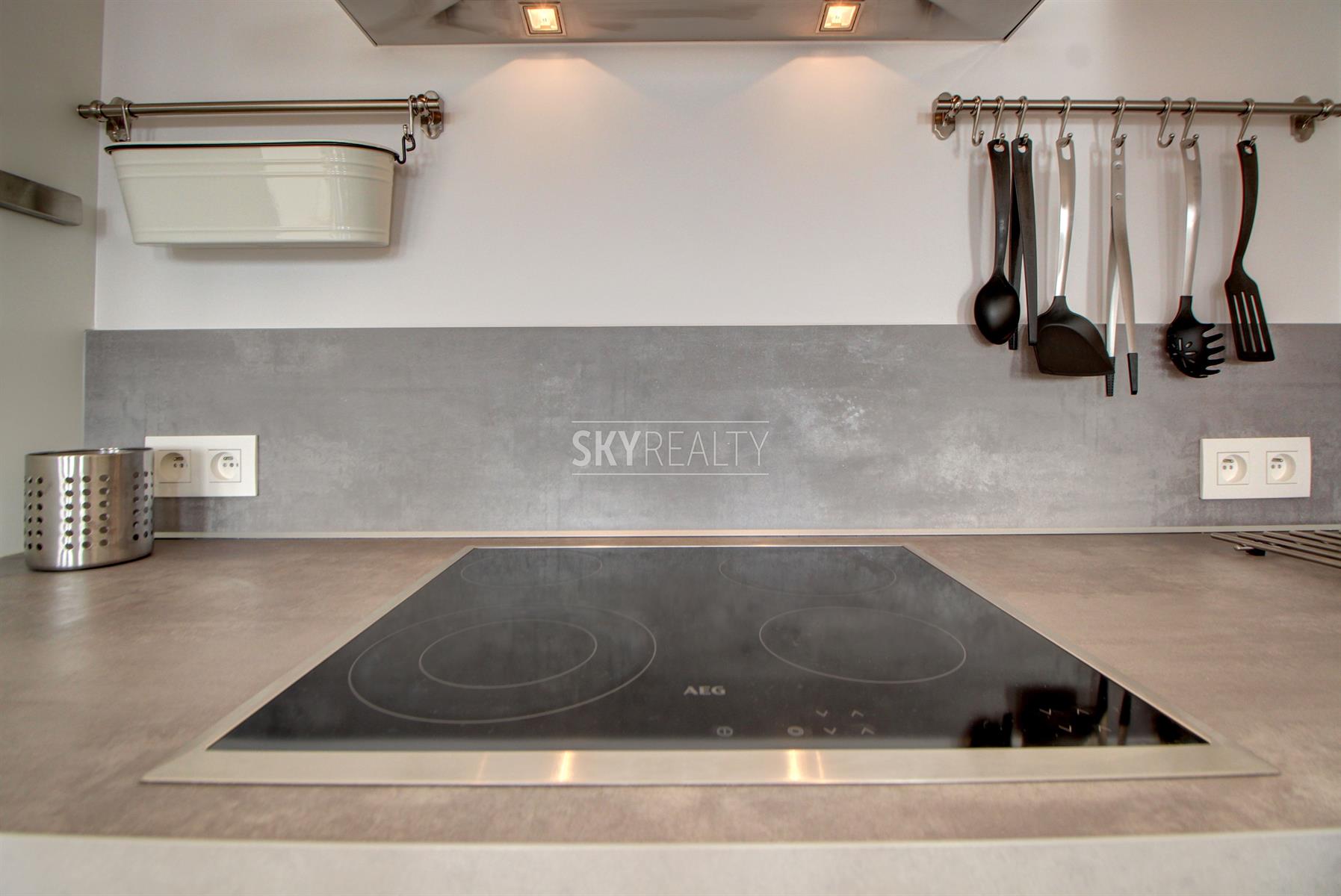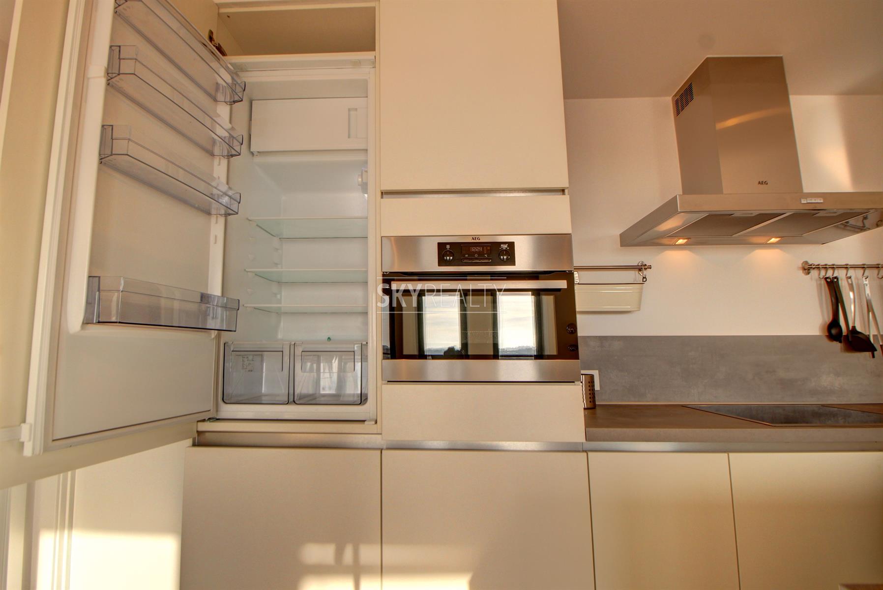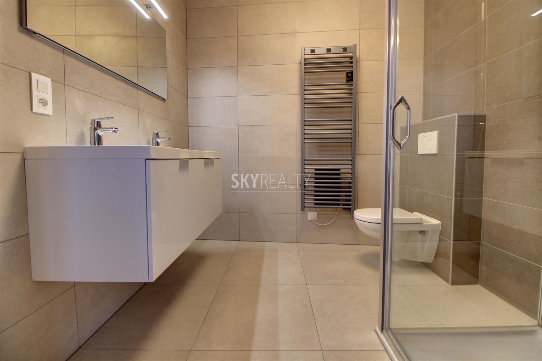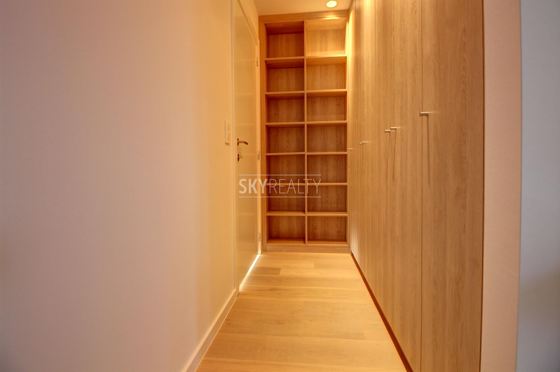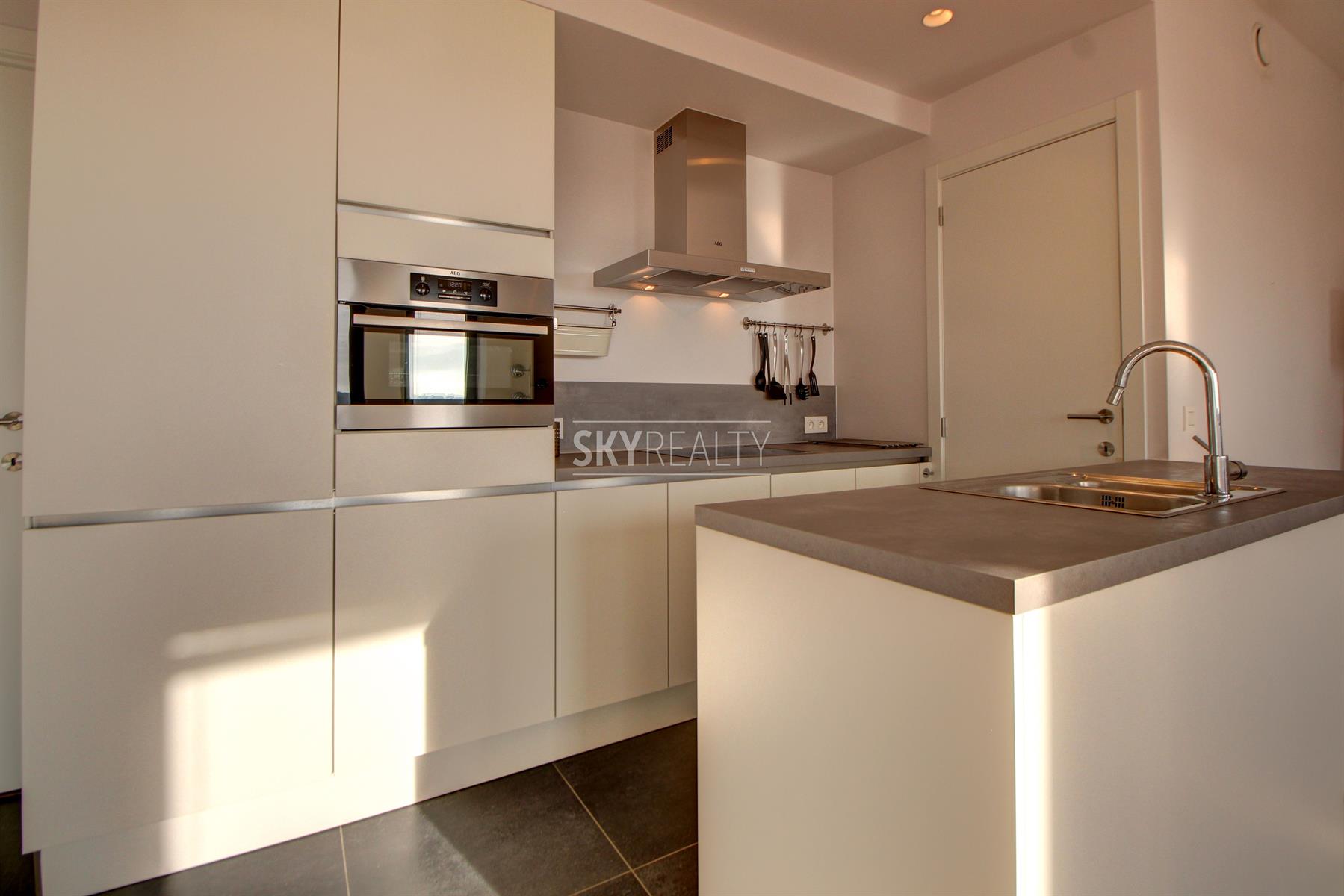 SCHUMAN / QUARTIER EUROPEEN / LEOPOLD / JOURDAN: Ce splendide penthouse 1 chambre de 85 m² entièrement meublé au 8e étage d'une nouveau projet vous séduira par son living et sa terrasse exposés plein sud (magnifique vue sans aucun vis-à-vis), ses belles prestations et sa localisation parfaite à 200m du Rond-point Schuman, de la Place Jourdan, à coté des transports, des parcs et de toutes les facilités. Il offre: un spacieux hall entrée avec vestiaire et de grands placards sur mesure, une toilette invité, un beau séjour de 41 m², une cuisine ouverte super équipée (réfrigérateur, taque vitrocéramique, hotte, combo four-micro-ondes, lave-vaisselle), une buanderie (combo lavante-séchante incluse), une grande chambre de 20 m² à l'arrière (en intérieur d'ilot) avec son dressing sur mesure et sa salle de bain en suite de (lavabo double-vasque, douche, toilette, radiateur porte-serviette), une cave, un emplacement de parking (option). Porte blindée, parquet en chêne, spots design, chauffage sol, système double-flux, faibles charges énergétiques PEB B-. Son étage élevé (8e) et son exposition plein sud (terrasse, living, cuisine) vous garantiront une luminosité exceptionnelle et une vue imprenable sur Bruxelles. Un bien entièrement meublé avec vaisselle et ustensiles de cuisine, lit, édredon, etc. N.B.: un canapé sera installé (non présent sur les photos). À coté des commerces. Loyer: 1650€ + 120€ de charges. Emplacement de parking (option +150€). Infos et visites: David: 0495 511 555