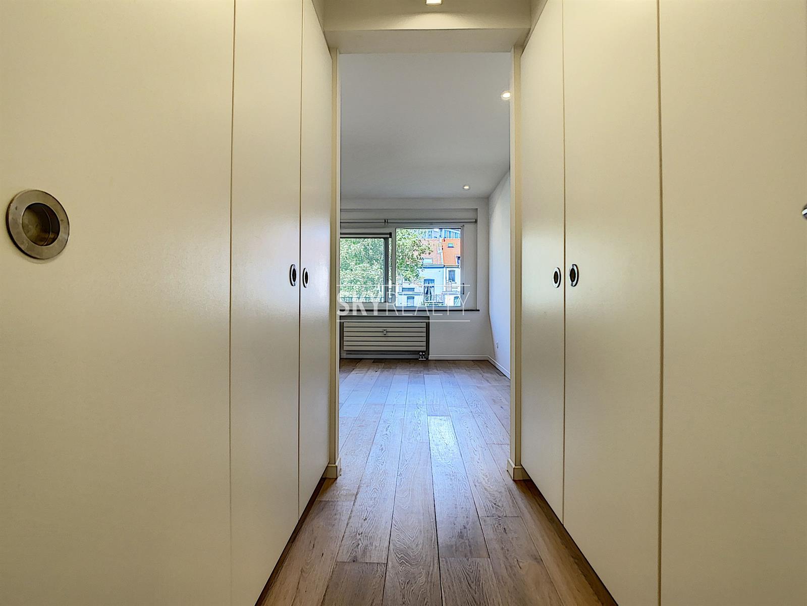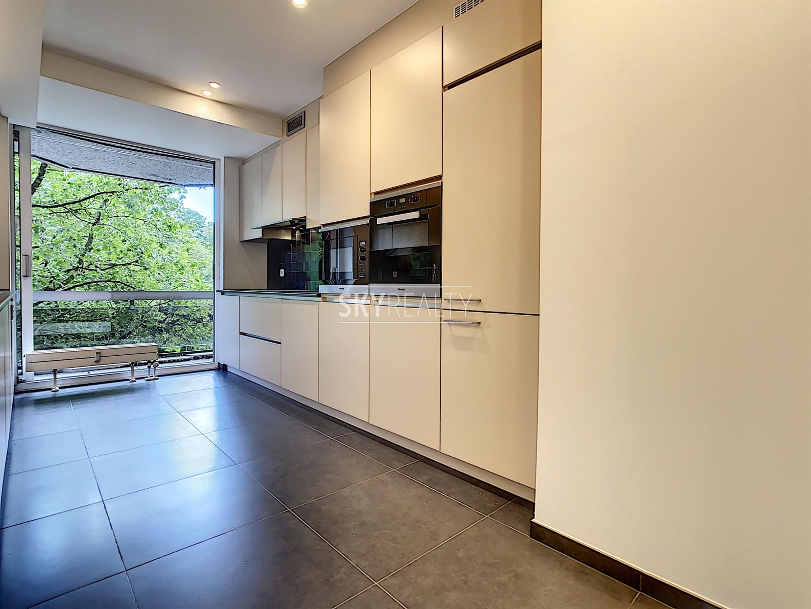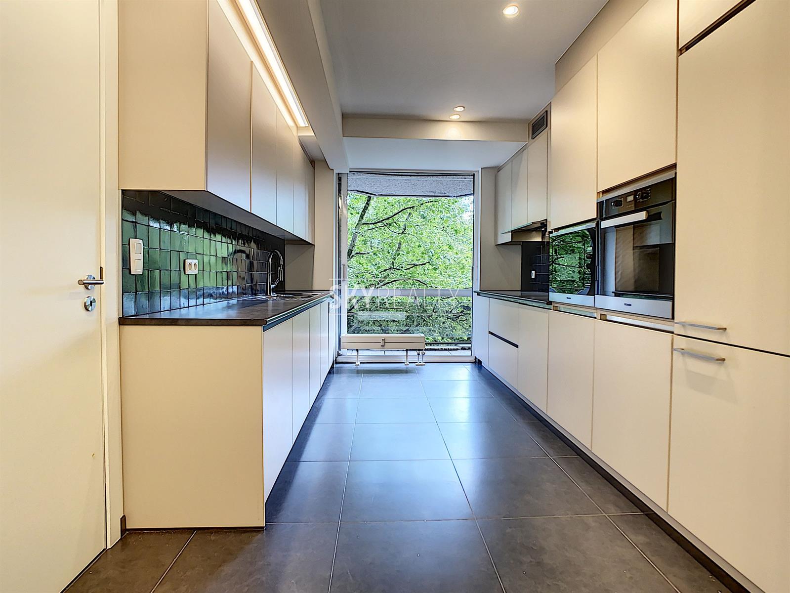 *** L o u é *** SCHUMAN / QUARTIER EUROPEEN / CINQUANTENAIRE: Idéalement situé à 300m de Schuman et à coté des transports et de toutes les facilités, ce splendide appartement 3 chambres de 160 m² vous comblera par la qualité de sa rénovation, sa luminosité et son emplacement exceptionnel en bordure du parc du Cinquantenaire. Il offre: un grand hall d'entrée avec vestiaire et débarras, un vaste séjour de 46 m² jouissant d'une agréable terrasse plein sud donnant sur le parc, une spacieuse cuisine super équipée (réfrigérateur/surgélateur, taque vitro-céramique, hotte, four, micro-ondes), un hall de nuit avec un grande buanderie, 3 chambres (15, 12, 11 m²) dont la chambre parentale avec grande salle de bain en suite (bain/douche, lavabo double, toilette et bidet) et un dressing, une salle de douche (douche et lavabo), deux toilettes séparées, une cave, un emplacement de parking. Un appartement entièrement remis à neuf récemment: spots design dimmables, porte blindée, parquet, vestiaire/placards sur mesures, grande buanderie, etc. Localisation prisée en bordure d’un des plus beaux parcs de la capitale, à proximité des transports (Métro et gare de train Schuman, connexion aéroport/OTAN, bus, voitures & vélos partagés) et de toutes les facilités (restaurants, cafés, supermarchés, commerces, banques, centre de fitness, etc.). Accès aisé aux grands axes autoroutiers. Loyer: 2600€ (parking inclus) + 225€ de charges (provision eau-chauffage-communs). Visites : David : 0495 511 555
