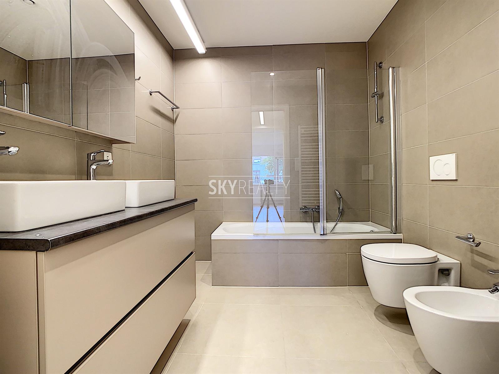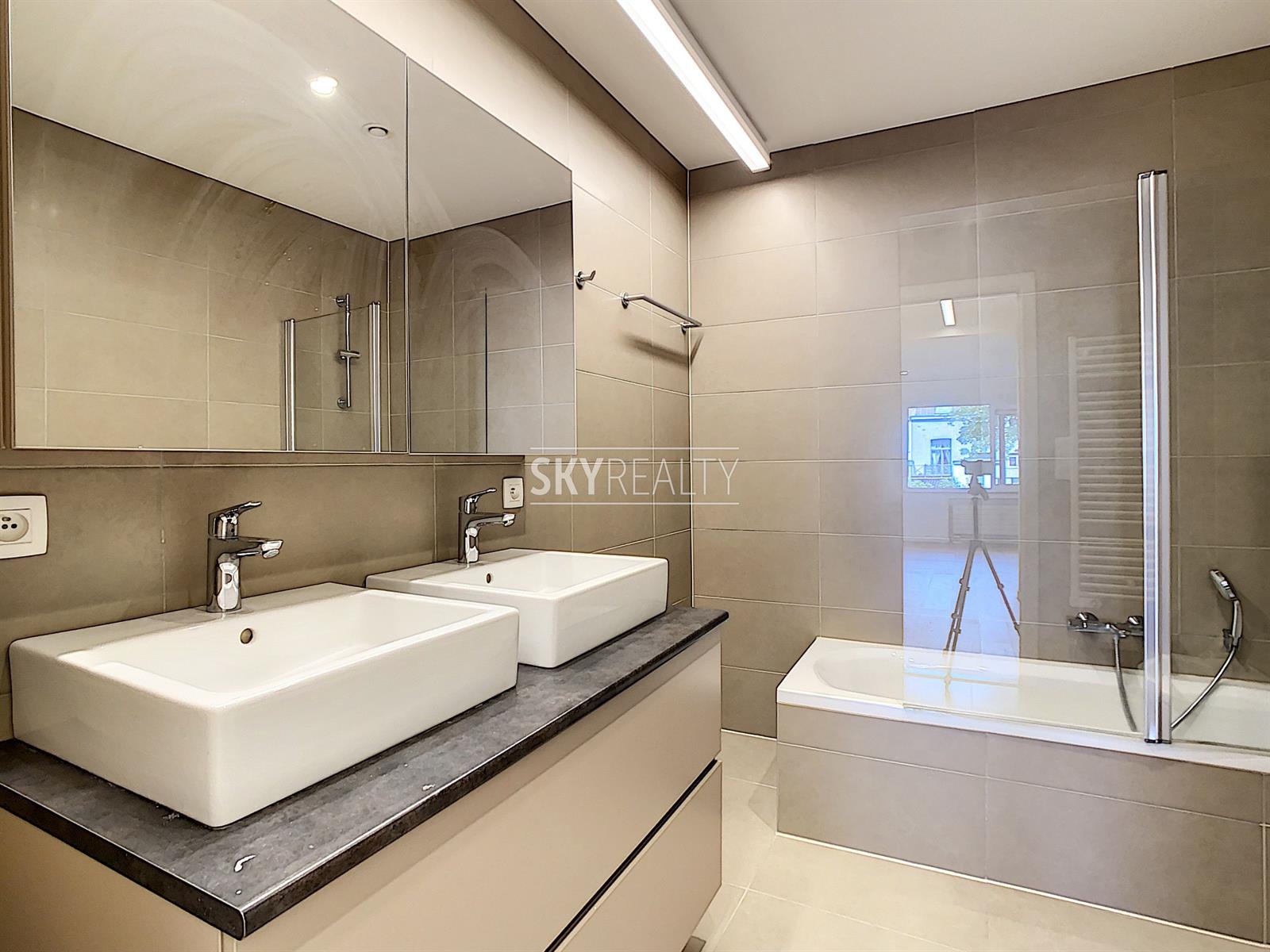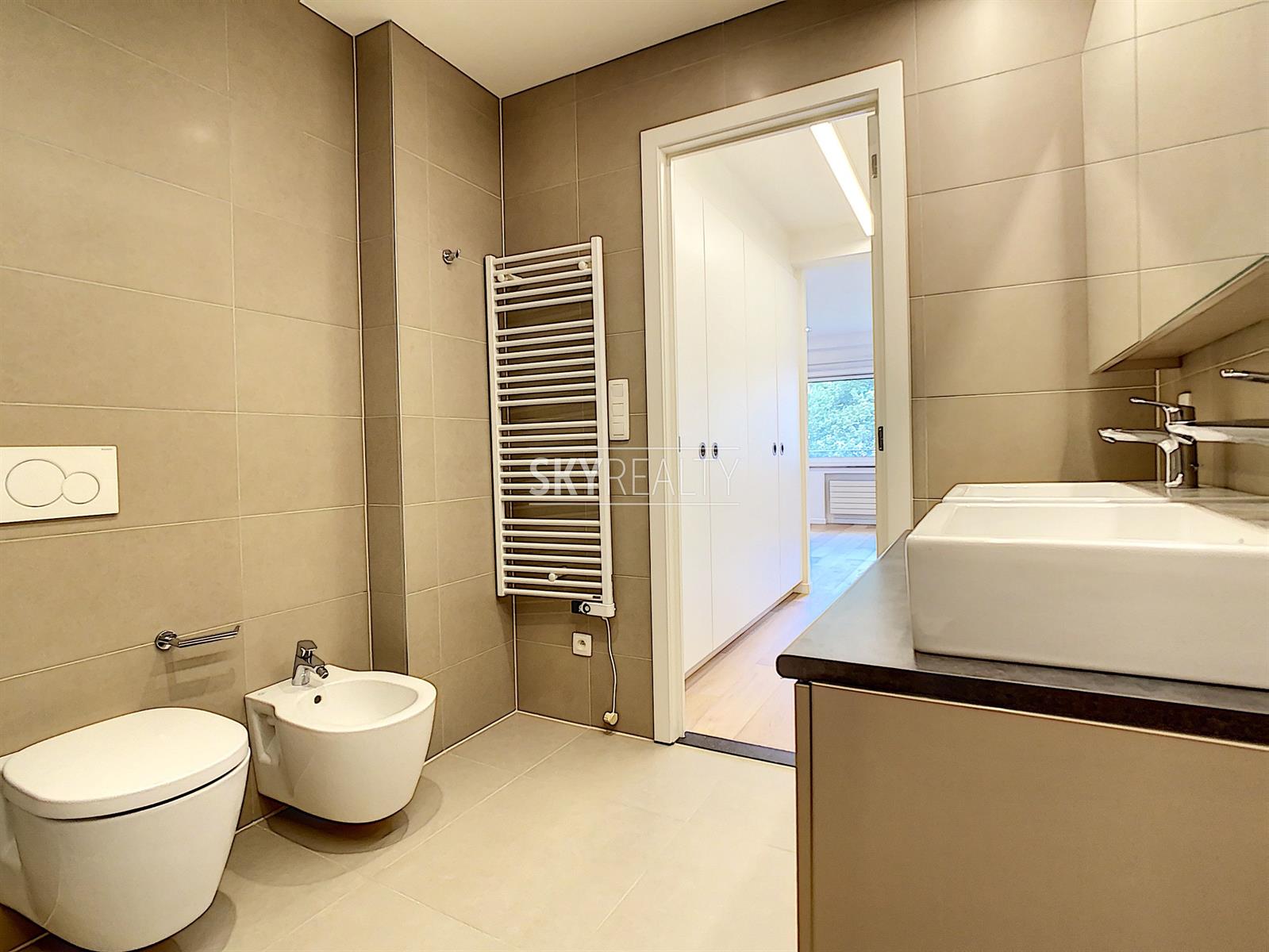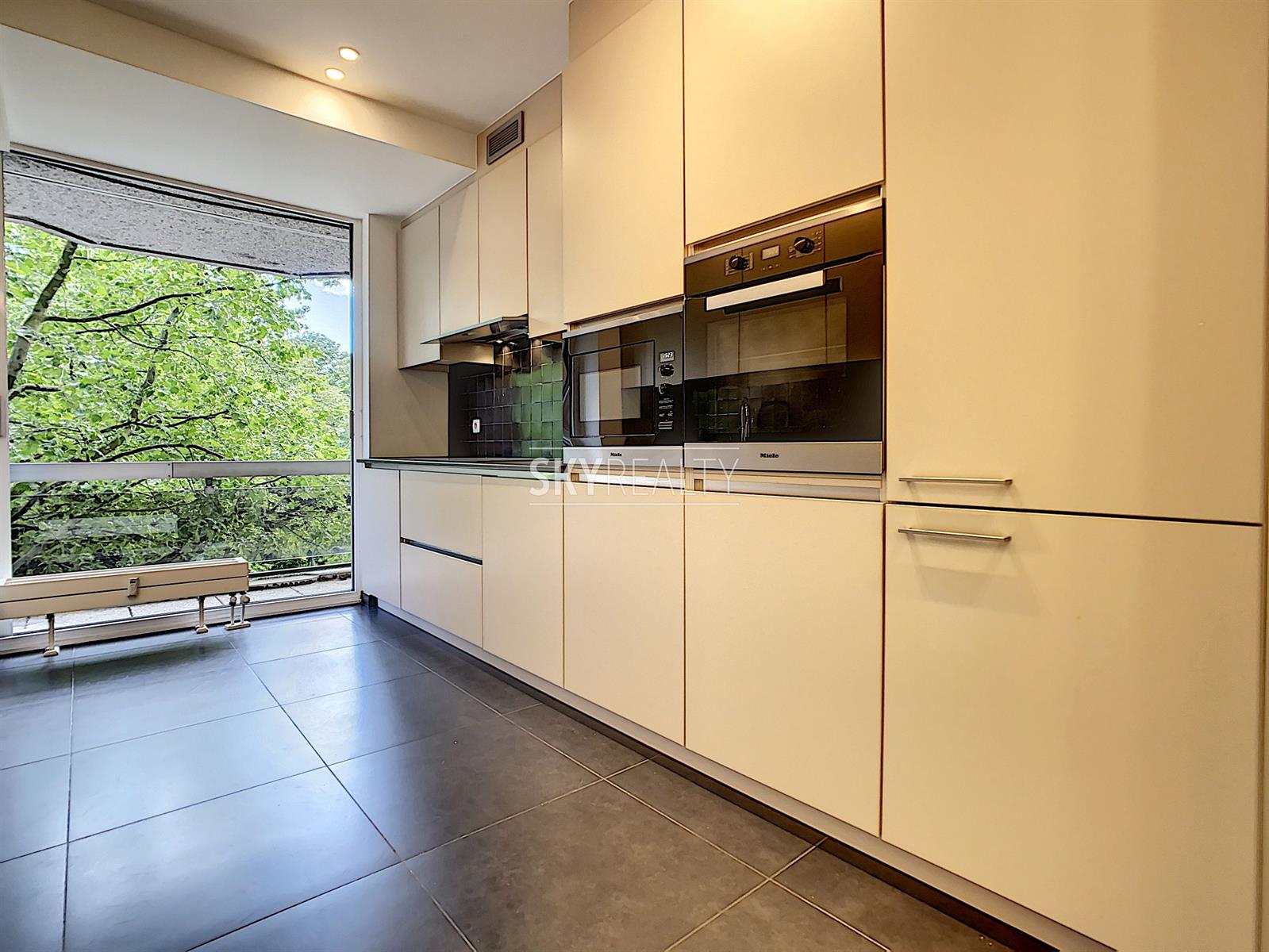 *** L o u é *** SCHUMAN / QUARTIER EUROPEEN / CINQUANTENAIRE: Idéalement situé à 300m de Schuman et à coté des transports et de toutes les facilités, ce splendide appartement 3 chambres de 160 m² vous comblera par la qualité de sa rénovation, sa luminosité et son emplacement exceptionnel en bordure du parc du Cinquantenaire. Il offre: un grand hall d'entrée avec vestiaire et débarras, un vaste séjour de 46 m² jouissant d'une agréable terrasse plein sud donnant sur le parc, une spacieuse cuisine super équipée (réfrigérateur/surgélateur, taque vitro-céramique, hotte, four, micro-ondes), un hall de nuit avec un grande buanderie, 3 chambres (15, 12, 11 m²) dont la chambre parentale avec grande salle de bain en suite (bain/douche, lavabo double, toilette et bidet) et un dressing, une salle de douche (douche et lavabo), deux toilettes séparées, une cave, un emplacement de parking. Un appartement entièrement remis à neuf récemment: spots design dimmables, porte blindée, parquet, vestiaire/placards sur mesures, grande buanderie, etc. Localisation prisée en bordure d’un des plus beaux parcs de la capitale, à proximité des transports (Métro et gare de train Schuman, connexion aéroport/OTAN, bus, voitures & vélos partagés) et de toutes les facilités (restaurants, cafés, supermarchés, commerces, banques, centre de fitness, etc.). Accès aisé aux grands axes autoroutiers. Loyer: 2600€ (parking inclus) + 225€ de charges (provision eau-chauffage-communs). Visites : David : 0495 511 555