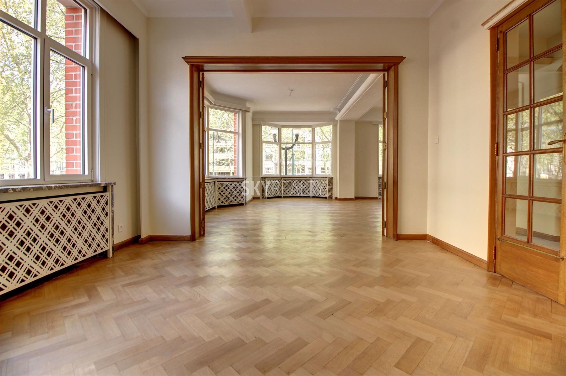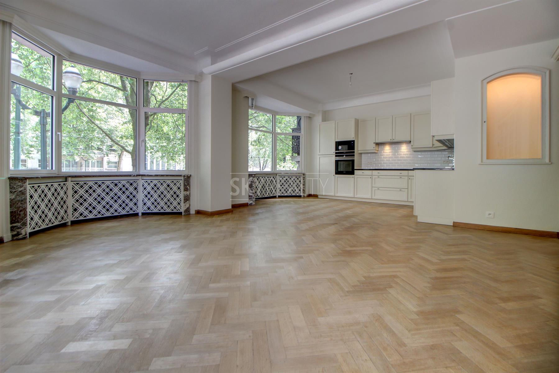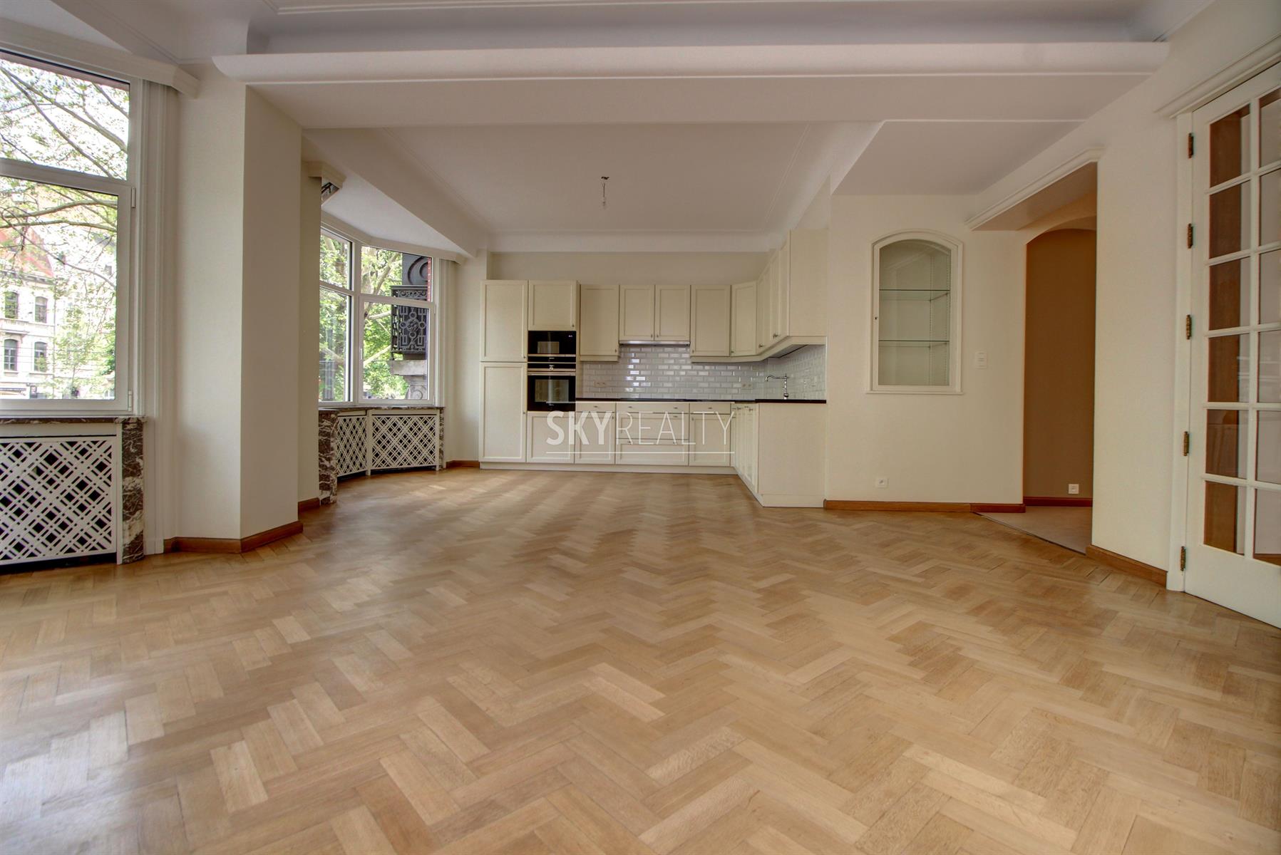 *** Loué *** Avenue Louise: Splendide appartement 3 chambres de caractère de 153 m² situé au premier étage d’un immeuble de standing de style Art Deco (1933). Il se compose comme suit: un vaste hall d'entrée, un spacieux living avec double exposition bénéficiant de grandes baies vitrées sur les 2 façades, une grande cuisine ouverte super équipée (électroménagers Siemens: réfrigérateur, taque induction, hotte, four, micro-ondes, lave-vaisselle), trois grandes chambres (dont une avec 2 pièces en enfilade), une salle de bain (bain/douche, double lavabo, radiateur porte-serviette, toilette, bidet) avec grand dressing attenant, une salle de douche italienne, un grand espace buanderie et une cave. Au dernier étage, une chambre de bonne avec douche, lavabo et toilette (option +100€). Première occupation après une rénovation complète. Tous les éléments décoratifs d'époques on été conservés. Très belles finitions (hauts plafonds moulurés, beau parquet en chêne massif, marbre, lumière indirecte, double vitrage aluminium, etc.). Un bien agréable à vivre jouissant d'une localisation parfaite à proximité de toutes les facilités (transports en communs, grands axes autoroutiers, écoles, parcs, etc.) et à coté des commerces réputés de la place Stéphanie, du Goulot Louise et du Bd de Waterloo. Proche de la Place du Chatelain. Loyer 1650€ + 300€ de charges (provision pour l'eau, chauffage, entretien des communs). Parking (+105€). Infos et visites: David: +32 495 511 555.