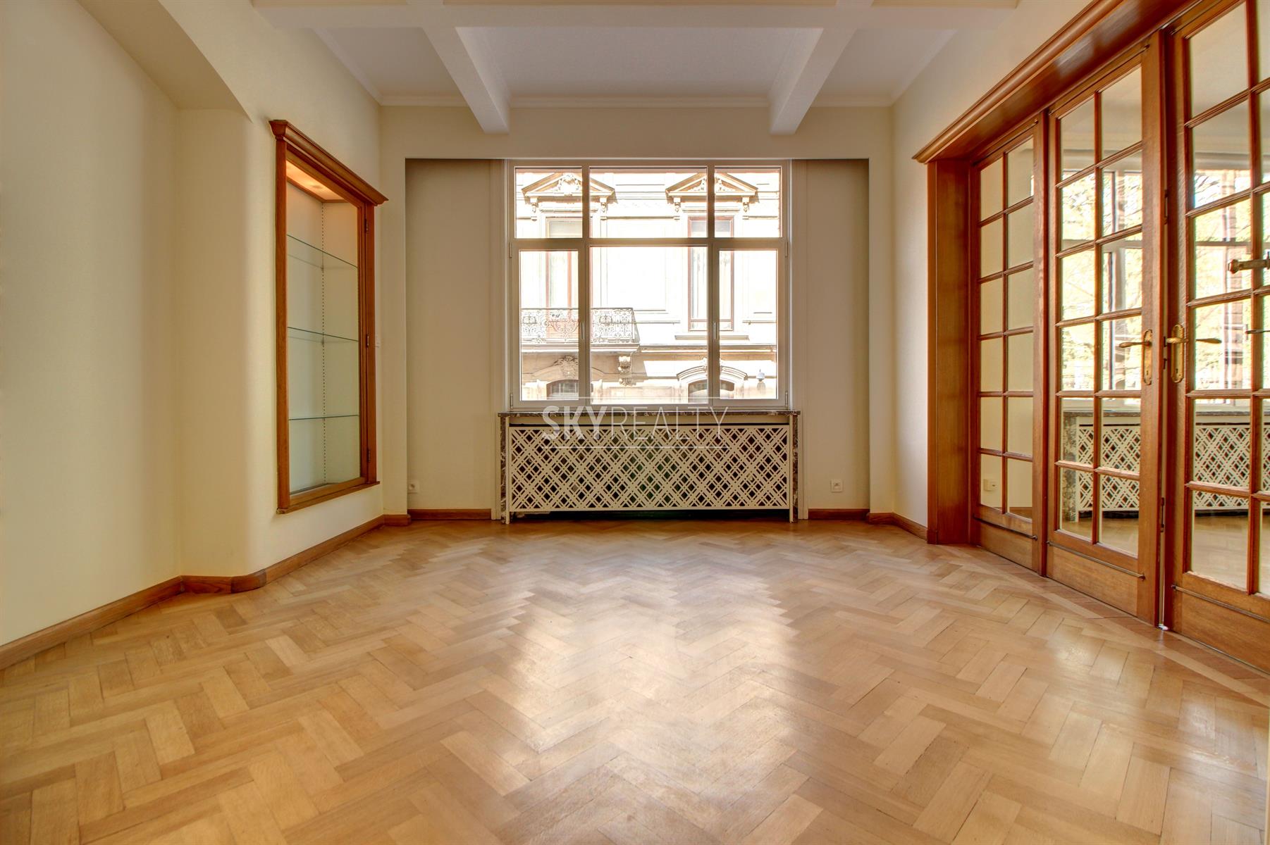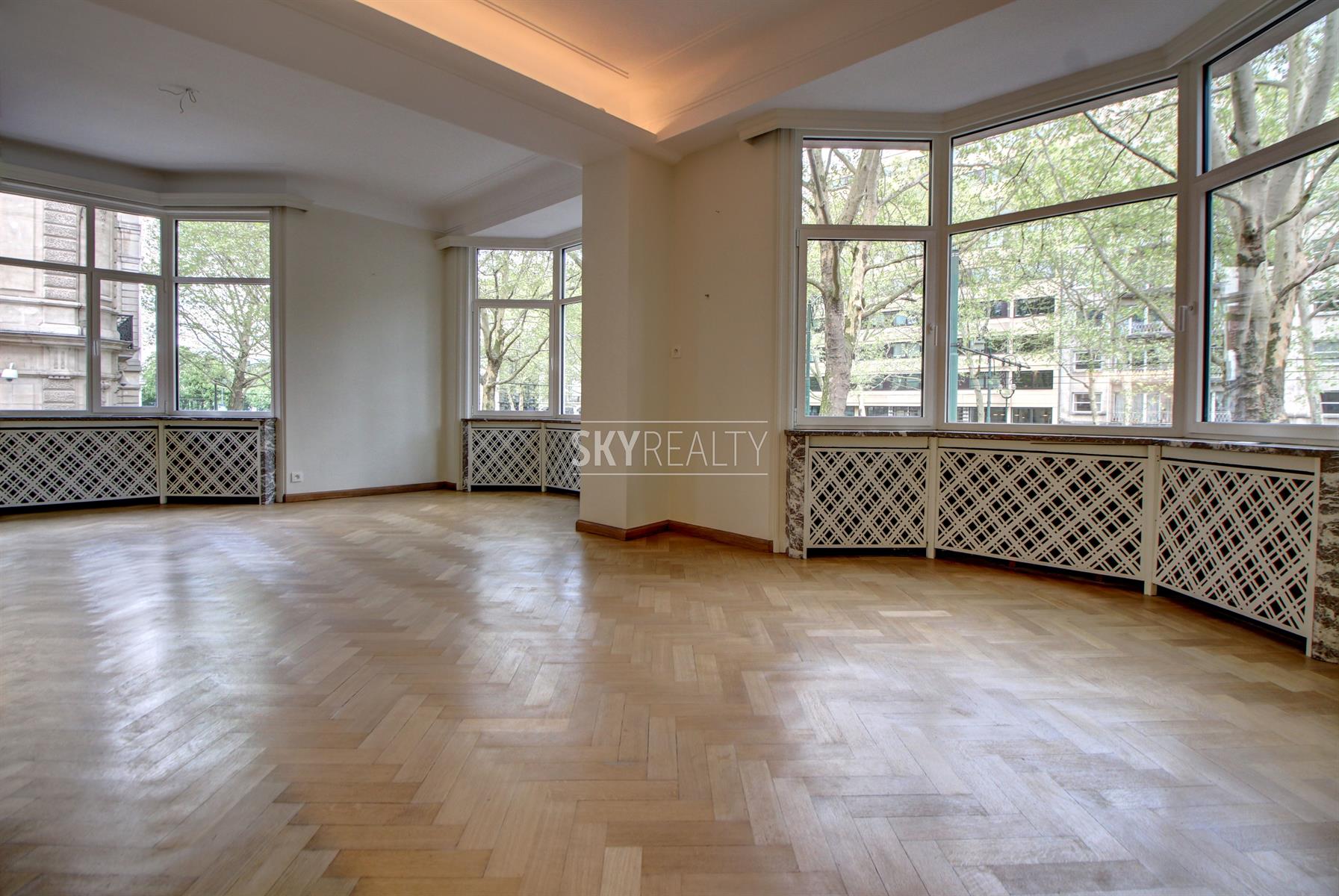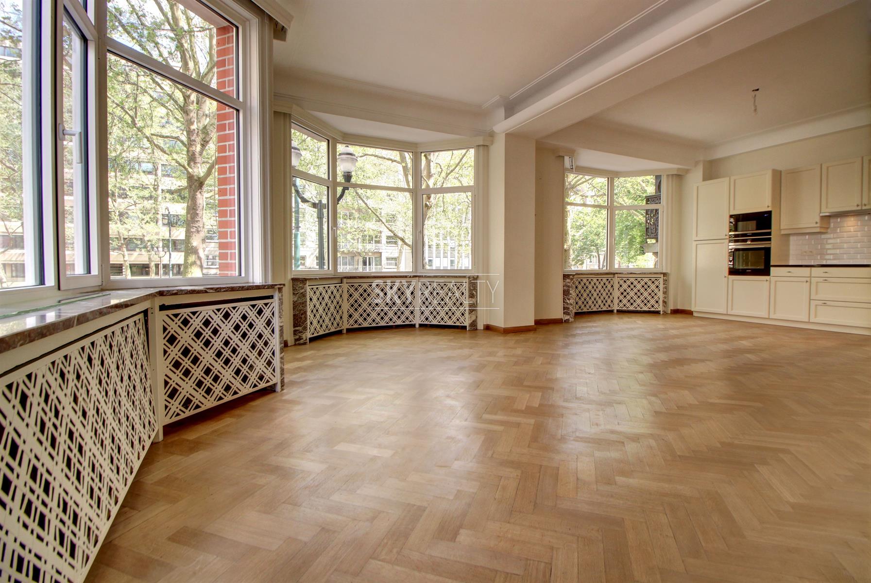 *** Loué *** Avenue Louise: Splendide appartement 3 chambres de caractère de 153 m² situé au premier étage d’un immeuble de standing de style Art Deco (1933). Il se compose comme suit: un vaste hall d'entrée, un spacieux living avec double exposition bénéficiant de grandes baies vitrées sur les 2 façades, une grande cuisine ouverte super équipée (électroménagers Siemens: réfrigérateur, taque induction, hotte, four, micro-ondes, lave-vaisselle), trois grandes chambres (dont une avec 2 pièces en enfilade), une salle de bain (bain/douche, double lavabo, radiateur porte-serviette, toilette, bidet) avec grand dressing attenant, une salle de douche italienne, un grand espace buanderie et une cave. Au dernier étage, une chambre de bonne avec douche, lavabo et toilette (option +100€). Première occupation après une rénovation complète. Tous les éléments décoratifs d'époques on été conservés. Très belles finitions (hauts plafonds moulurés, beau parquet en chêne massif, marbre, lumière indirecte, double vitrage aluminium, etc.). Un bien agréable à vivre jouissant d'une localisation parfaite à proximité de toutes les facilités (transports en communs, grands axes autoroutiers, écoles, parcs, etc.) et à coté des commerces réputés de la place Stéphanie, du Goulot Louise et du Bd de Waterloo. Proche de la Place du Chatelain. Loyer 1650€ + 300€ de charges (provision pour l'eau, chauffage, entretien des communs). Parking (+105€). Infos et visites: David: +32 495 511 555.