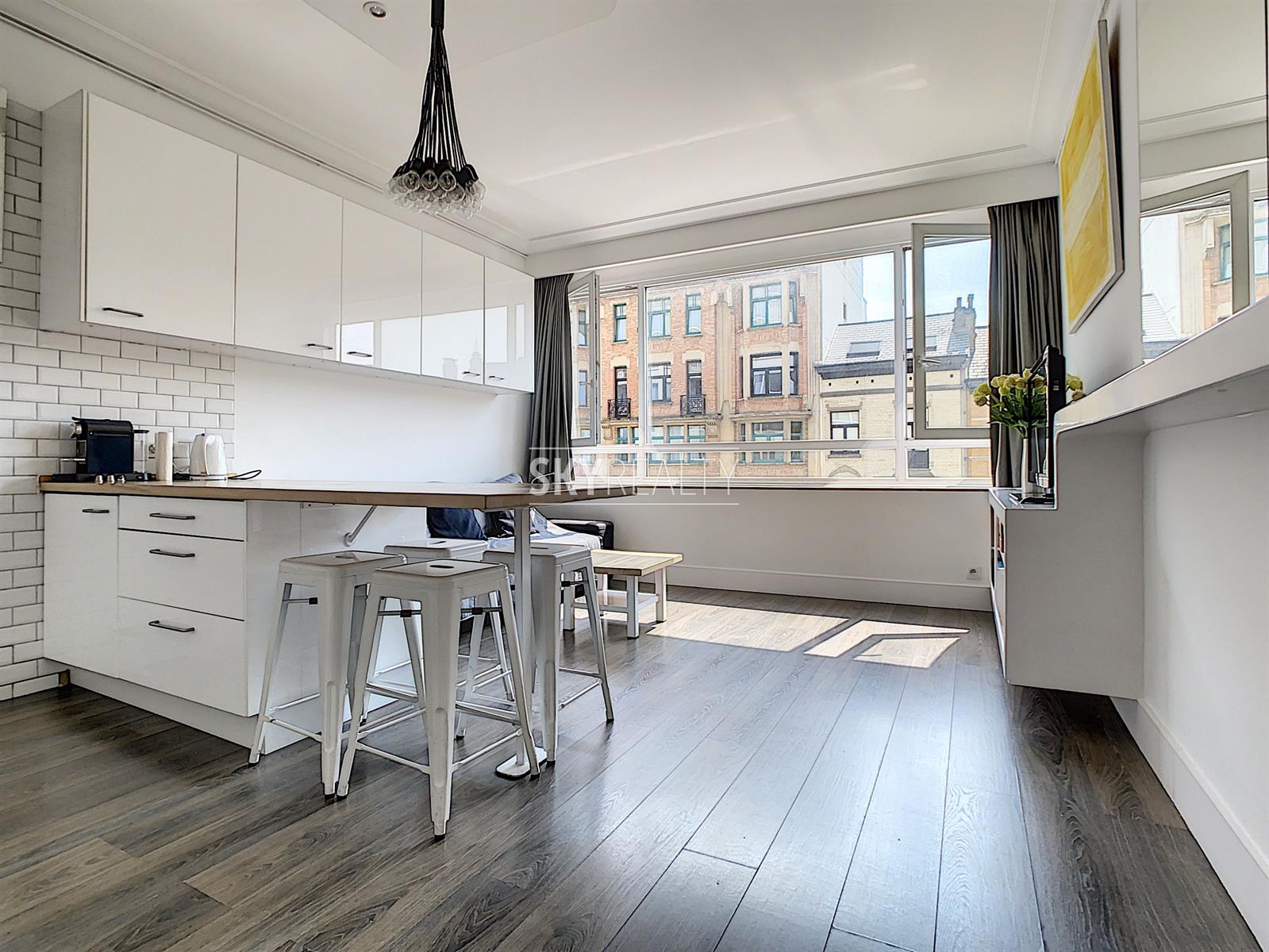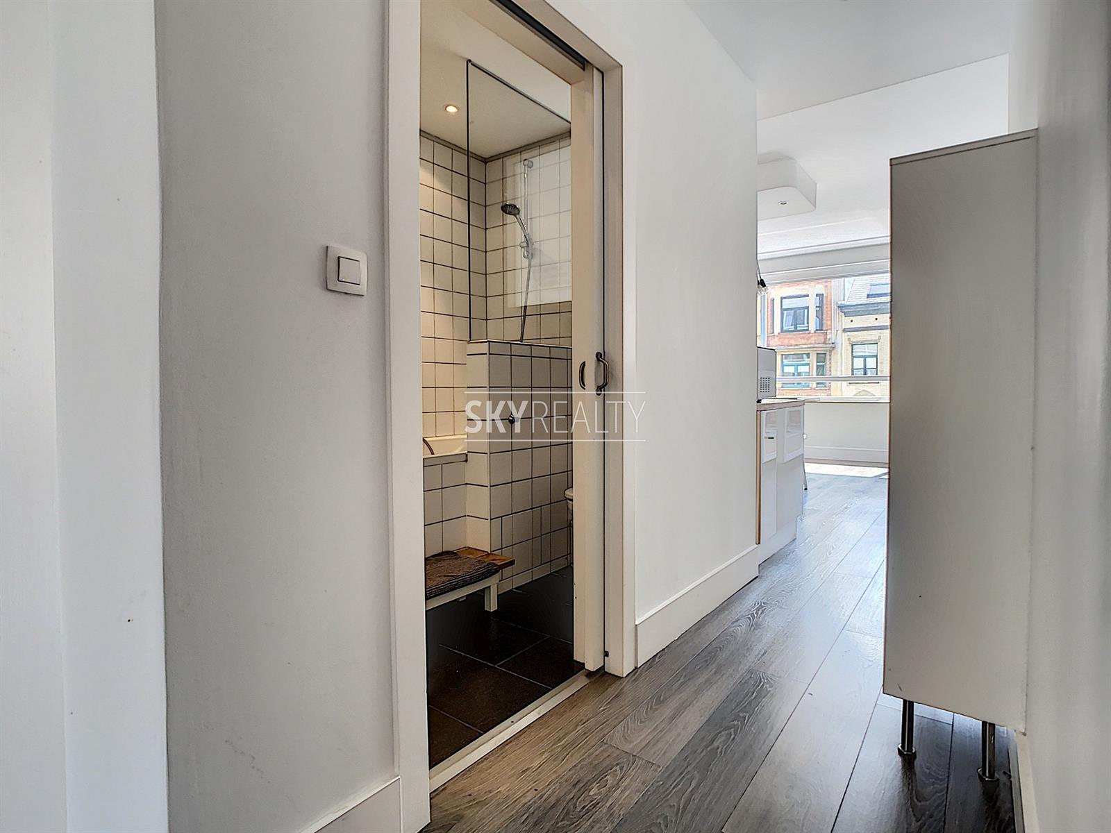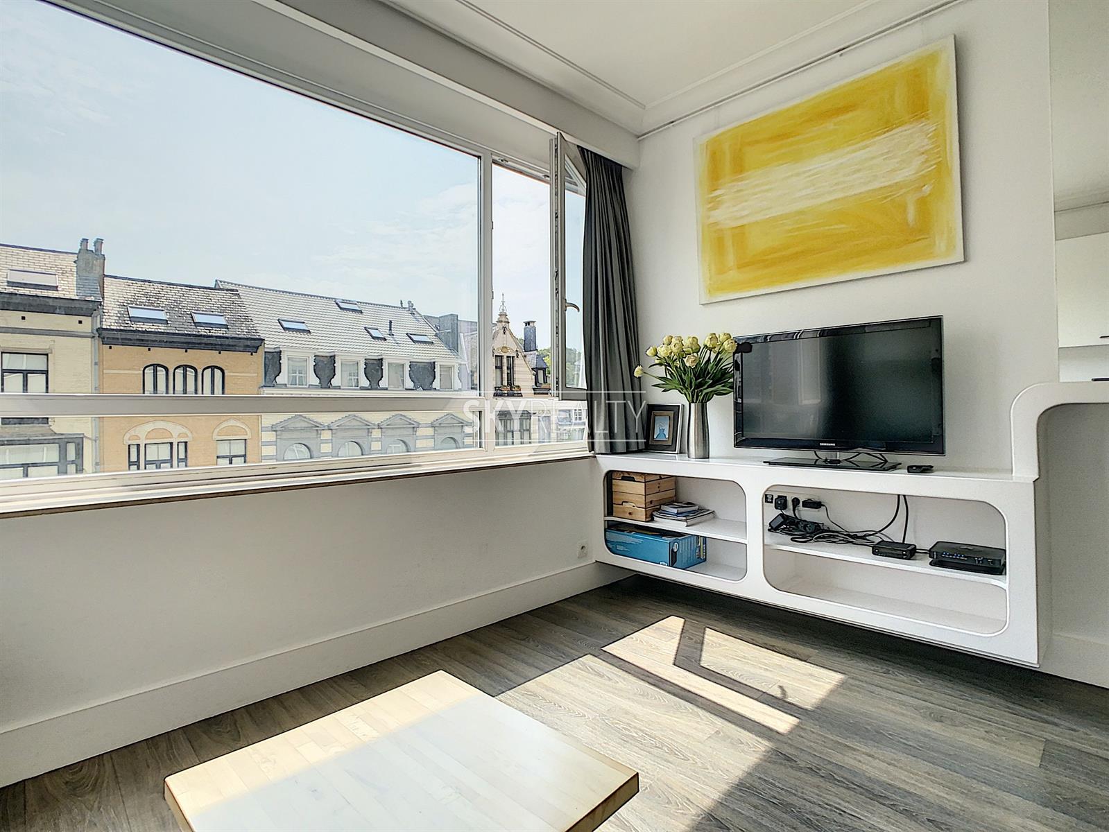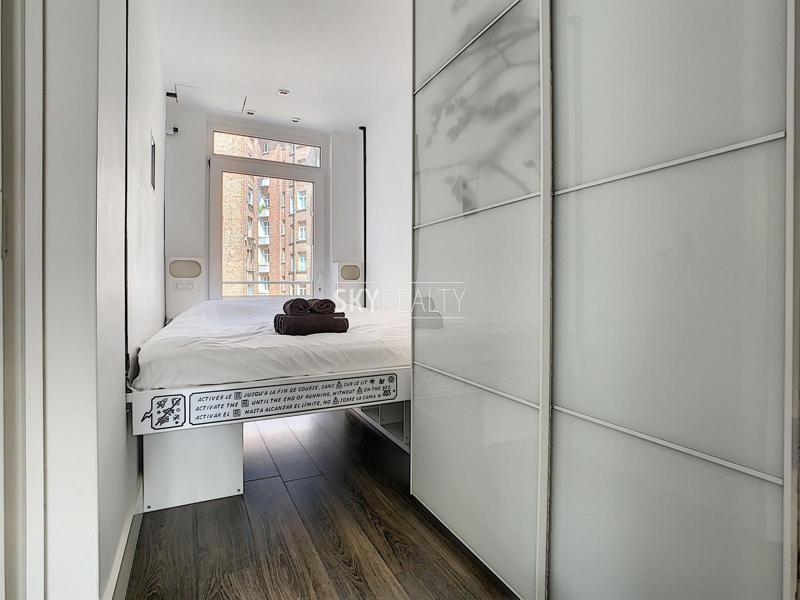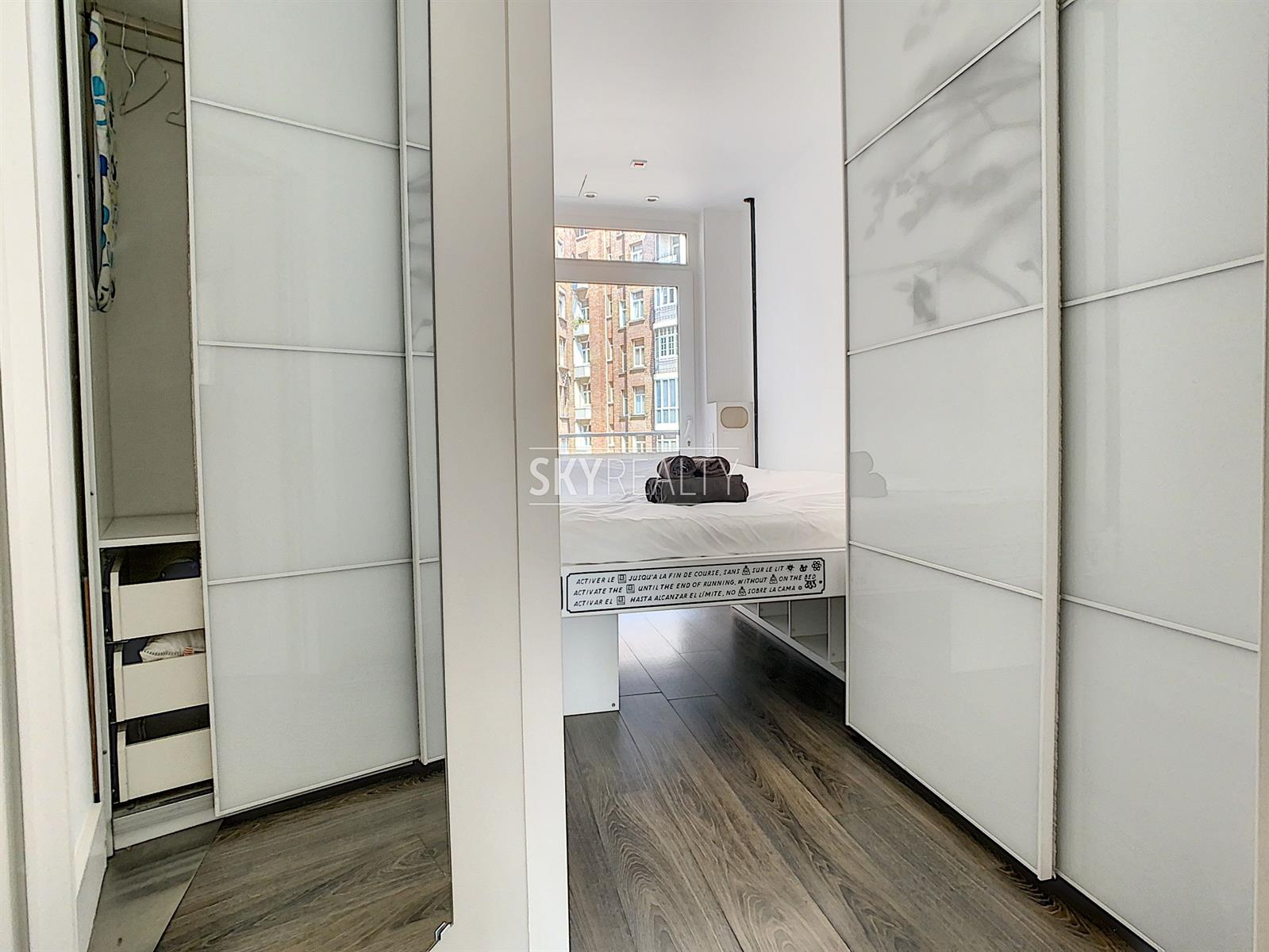 *** L o u é *** Rond-Point de l'Étoile / Cambre-Étoile / Quartier ULB: Ce charmant appartement 1 chambre meublé de 50 m² au 3e étage d'un immeuble de standing vous enchantera par sa rénovation résolument contemporaine, sa luminosité et sa localisation parfaite à coté de l'Abbaye et du bois de la Cambre, des transports et de toutes les facilités de ce quartier animé. Il se compose comme suit: un hall d'entrée avec placards, un living lumineux (avec un canapé convertible en lit), une cuisine ouverte avec son ilot centrale pour plus de convivialité (réfrigérateur, taque au gaz, hotte, four, micro-ondes), une petite chambre séparée équipée d'un astucieux lit escamotable au plafond (il libère totalement l'espace le jour et descend le soir sans déménager votre pièce), un accès à un petit balcon à l'arrière, une salle de bain (lavabo, bain/douche, toilette). Rénovation récente de qualité, double vitrage, luminaires dimmables, nombreux rangements astucieux réalisés sur mesure. Une cave et local vélos fermé à clé. Un bien complètement meublé avec vaisselle, ustensiles de cuisine, aspirateur, fer et table à repasser, grille pain, machine à café, etc. Quartier prisé et localisation pratique et coté de toutes les facilités. Libre immédiatement. Bail minimum 1 année. Loyer 750 € + forfait ALL IN de 250 € pour les charges (parties communes, eau chaude/froide, chauffage, électricité, internet & télévision digitale chez Proximus + Netflix). Infos et visites: David: 0495 511 555.