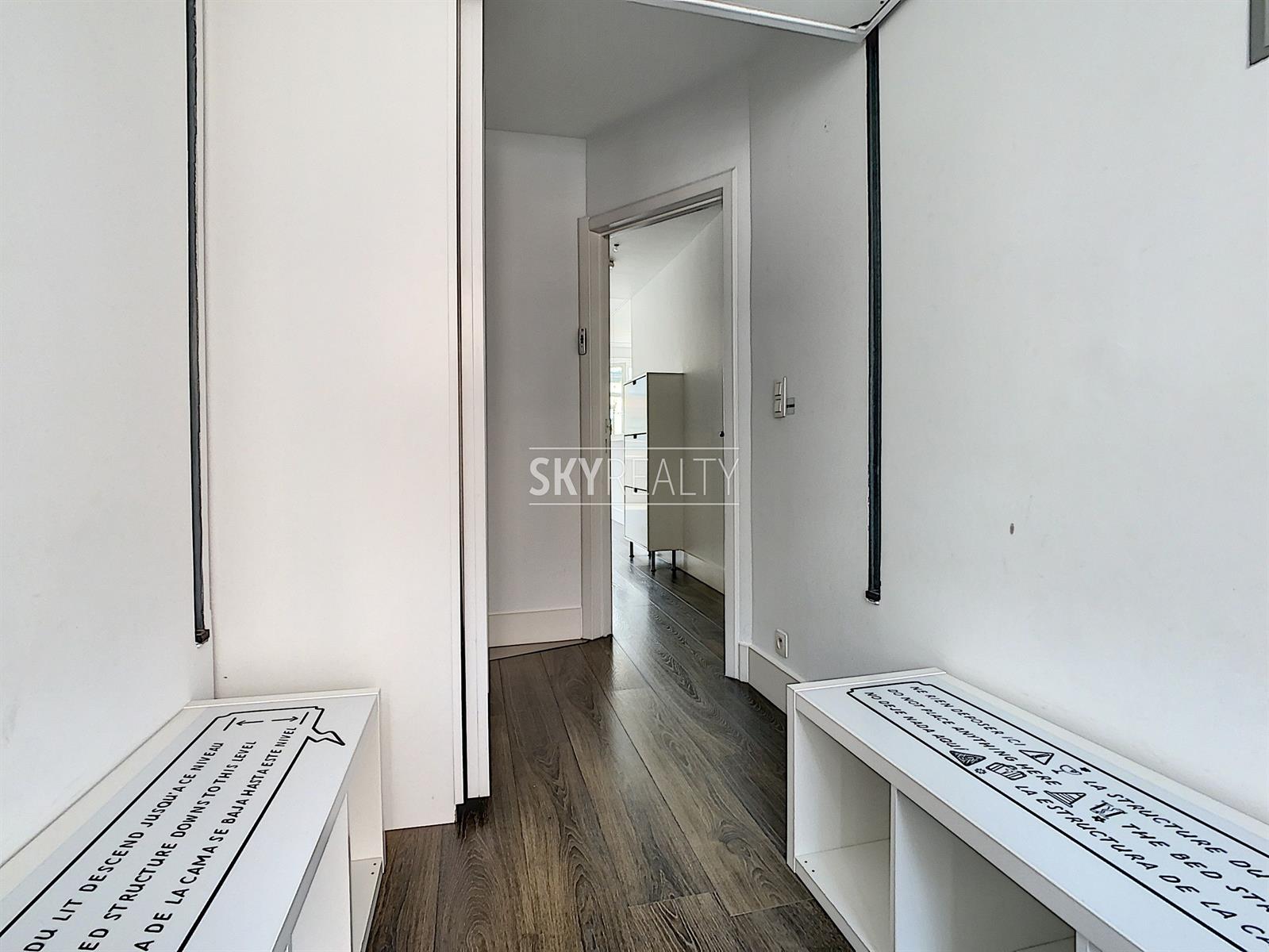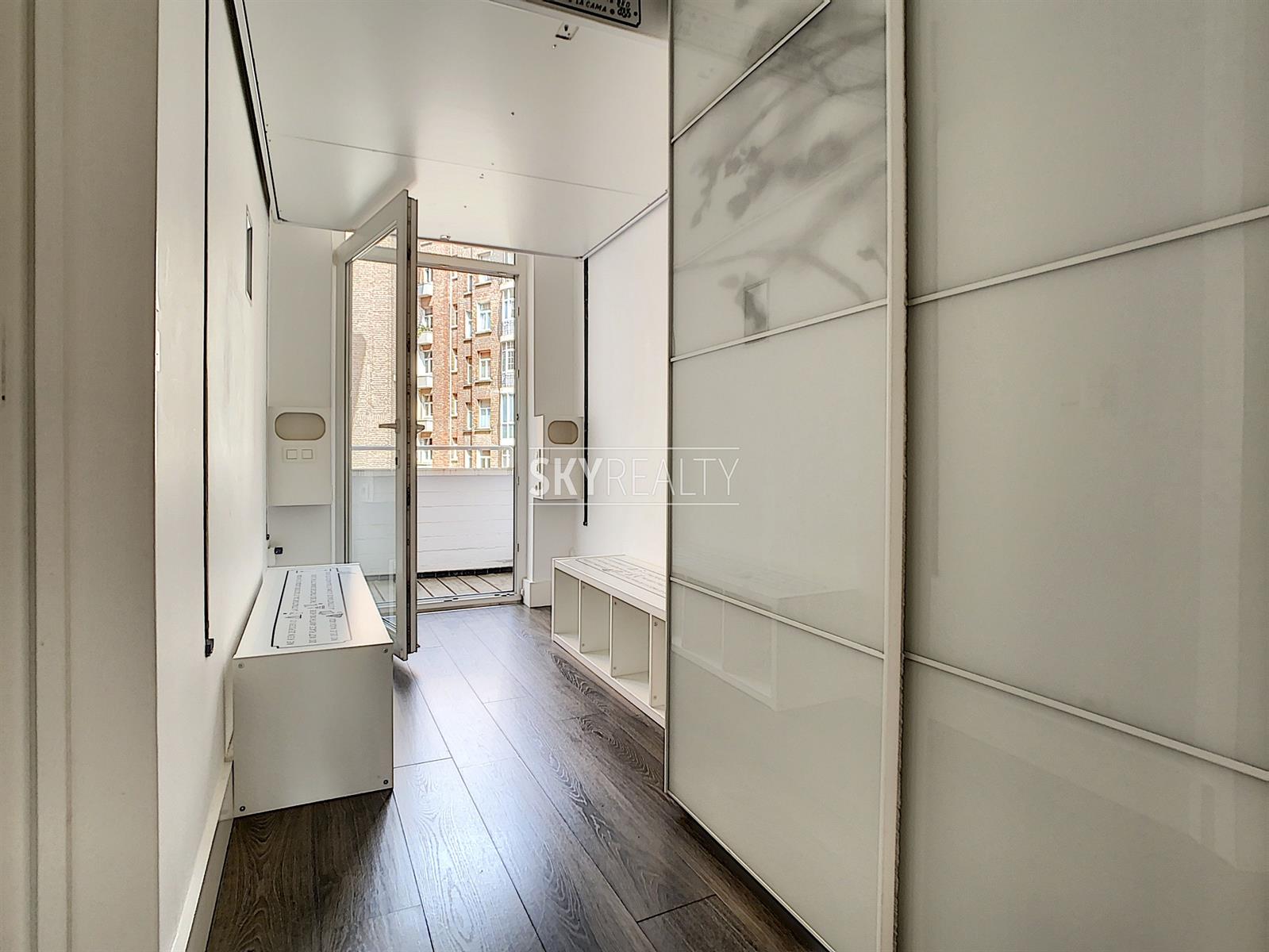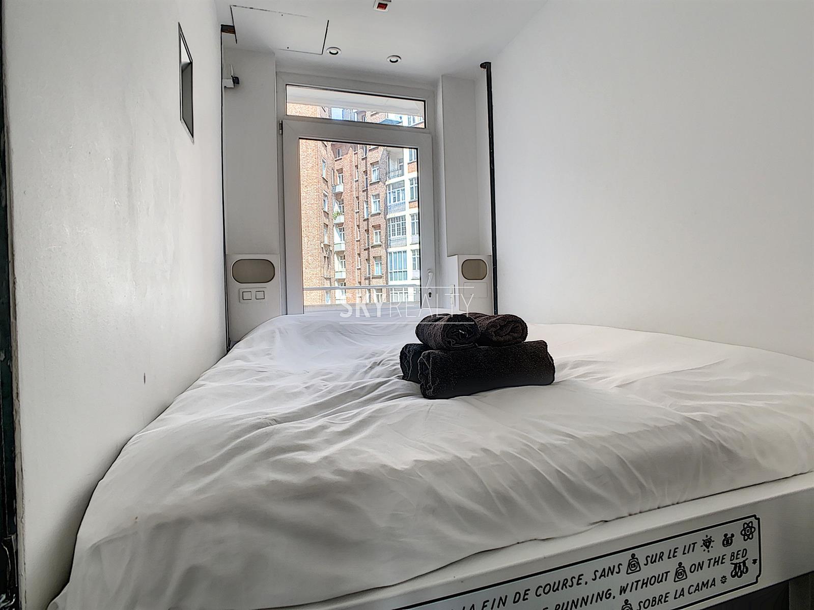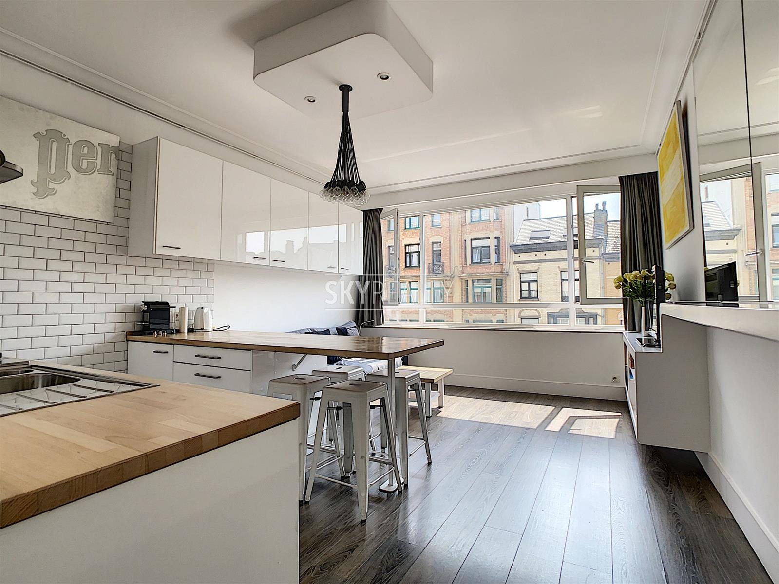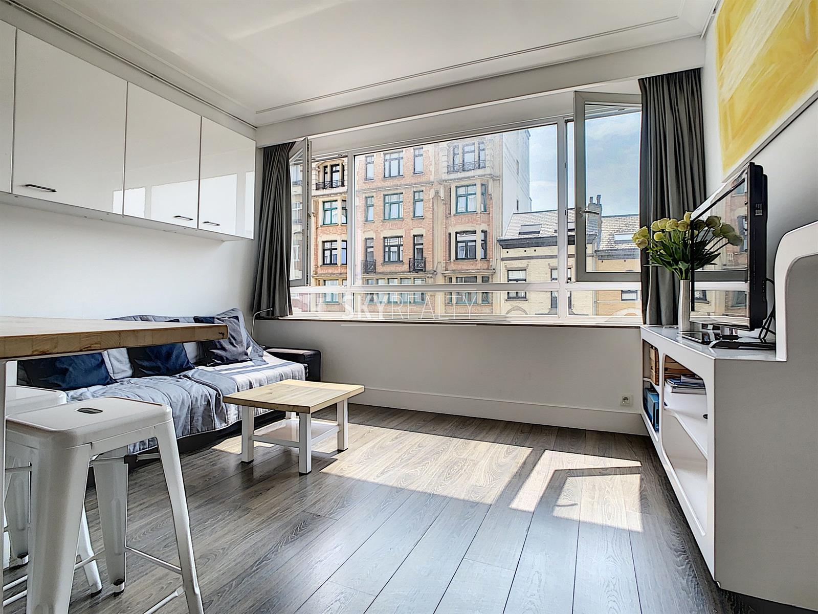 *** L o u é *** Rond-Point de l'Étoile / Cambre-Étoile / Quartier ULB: Ce charmant appartement 1 chambre meublé de 50 m² au 3e étage d'un immeuble de standing vous enchantera par sa rénovation résolument contemporaine, sa luminosité et sa localisation parfaite à coté de l'Abbaye et du bois de la Cambre, des transports et de toutes les facilités de ce quartier animé. Il se compose comme suit: un hall d'entrée avec placards, un living lumineux (avec un canapé convertible en lit), une cuisine ouverte avec son ilot centrale pour plus de convivialité (réfrigérateur, taque au gaz, hotte, four, micro-ondes), une petite chambre séparée équipée d'un astucieux lit escamotable au plafond (il libère totalement l'espace le jour et descend le soir sans déménager votre pièce), un accès à un petit balcon à l'arrière, une salle de bain (lavabo, bain/douche, toilette). Rénovation récente de qualité, double vitrage, luminaires dimmables, nombreux rangements astucieux réalisés sur mesure. Une cave et local vélos fermé à clé. Un bien complètement meublé avec vaisselle, ustensiles de cuisine, aspirateur, fer et table à repasser, grille pain, machine à café, etc. Quartier prisé et localisation pratique et coté de toutes les facilités. Libre immédiatement. Bail minimum 1 année. Loyer 750 € + forfait ALL IN de 250 € pour les charges (parties communes, eau chaude/froide, chauffage, électricité, internet & télévision digitale chez Proximus + Netflix). Infos et visites: David: 0495 511 555.