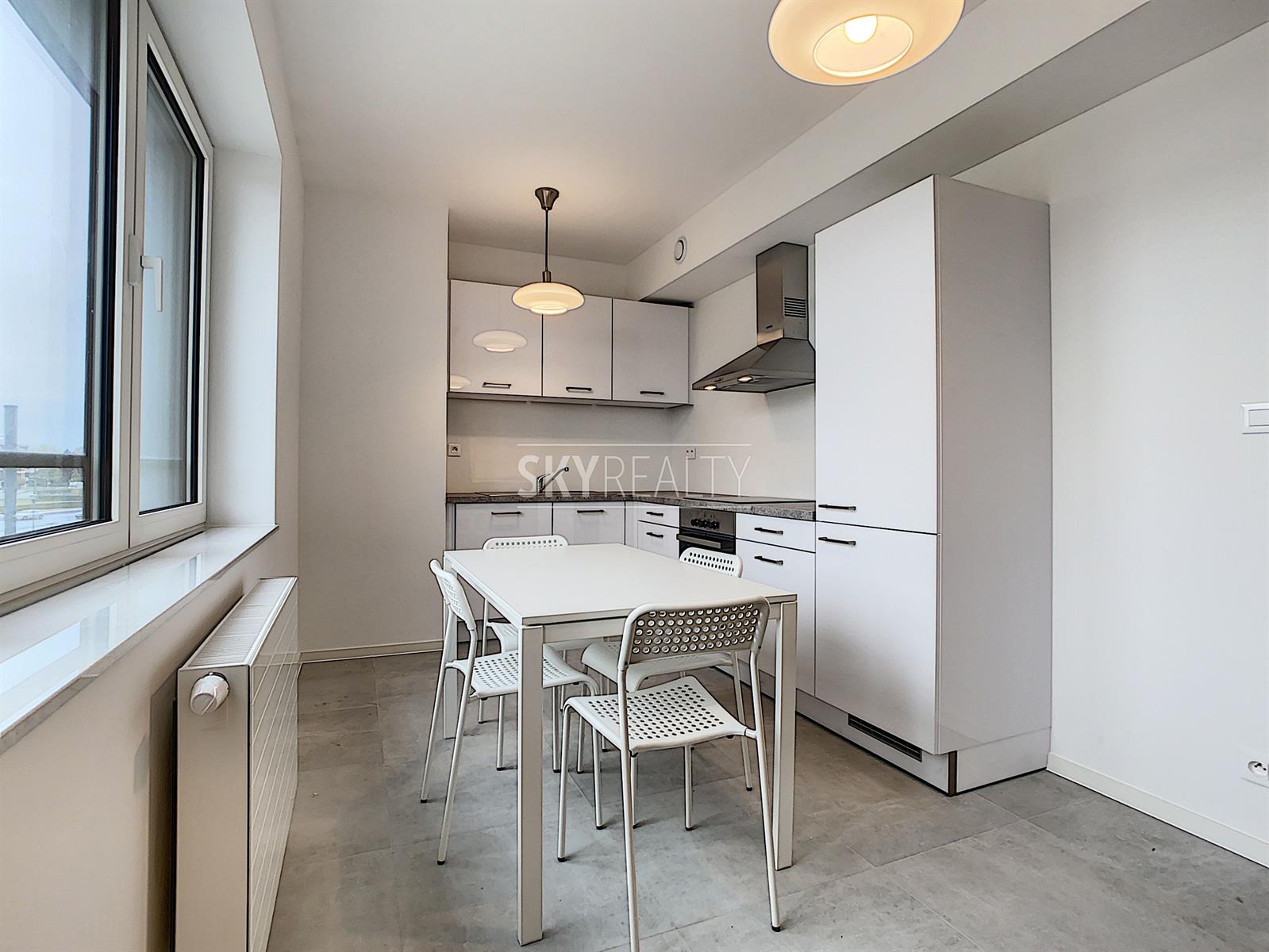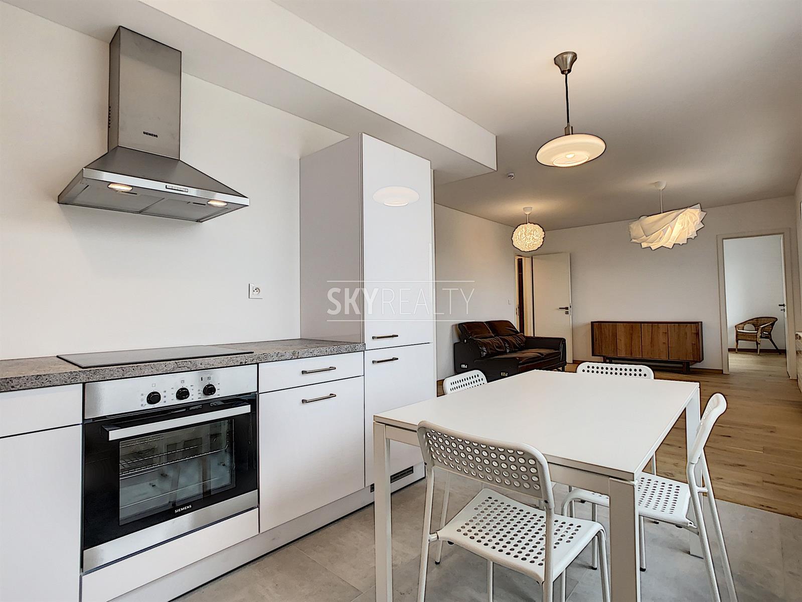 BORDET | PROJET NEUF EVERGATE: Nous vous proposons ce spacieux appartement neuf 100% meublé de 77 m² au 2e étage d'un nouveau projet immobilier de standing, à coté dans transports, des commerces et de toutes les facilités. Première occupation. Il offre: un hall d'entrée (6 m²) avec un espace buanderie et débarras, un spacieux séjour de 24 m² (jolie vue dégagée) avec une cuisine ouverte super équipée (réfrigérateur-surgélateur, taque vitro-céramique, hotte, four, lave-vaisselle), une grande chambre de 15 m², une salle de bain (grande douche, lavabo double vasque, radiateur porte-serviettes), une toilette séparée. En sous-sol: une grande cave (5 m²), un local vélos / poussettes et un emplacement de parking (option). Triples vitrages + système double-flux + chaudière individuelle au gaz + isolation haute performance (= faibles charges énergétiques), vidéophonie, porte sécurisée, etc. À proximité des commerces, des supermarchés, du Shopping d'Evere, des centres sportifs. Gare Bordet à 3 min à pied (connexion directe et super rapide vers le centre ville/Schuman), arrêt de tram Da Vinci (lignes 32/55/62) et arrêt de bus (lignes 21/65/178). Accès aisé aux grands axes autoroutiers, vers l'aéroport de Bruxelles et le zoning de Diegem. Loyer: 900 € + charges de 40 € (provision pour les communs). 6 mois d'abonnement gratuit chez Proximus (internet/TV/tél.). Le gaz (chauffage), l'électricité et l'eau sont à charge du preneur. Bail min. 1 année. Libre immédiatement. David: 0495 511 555