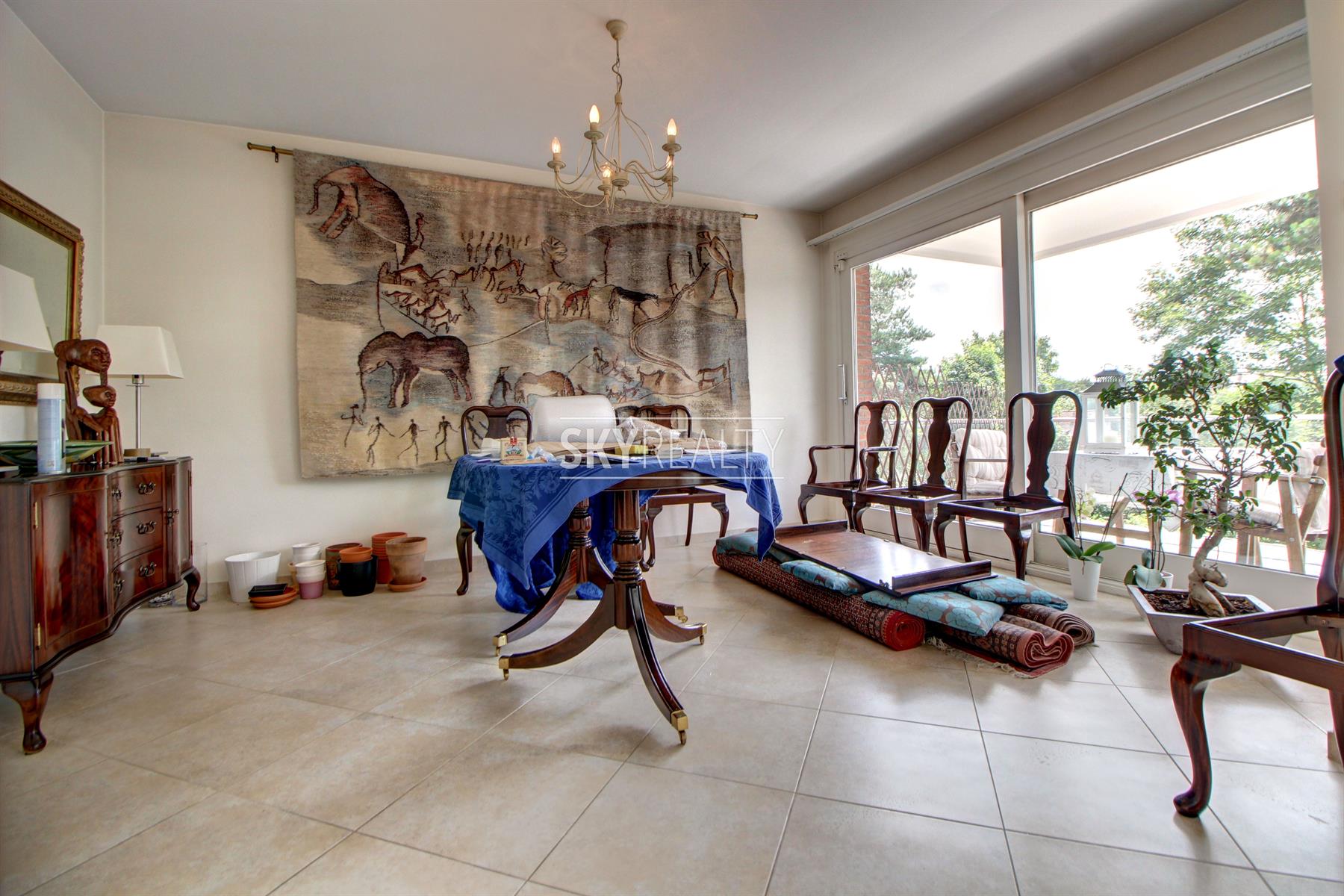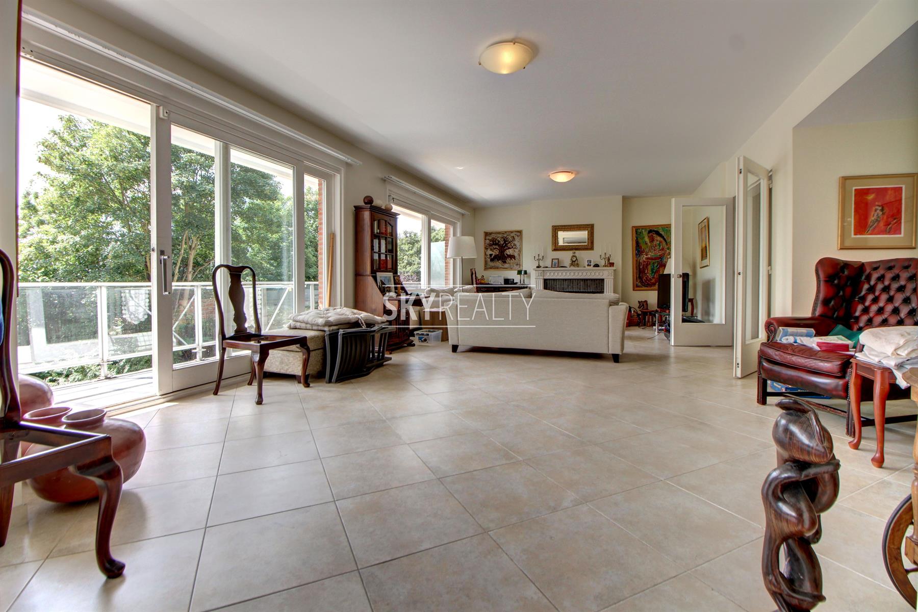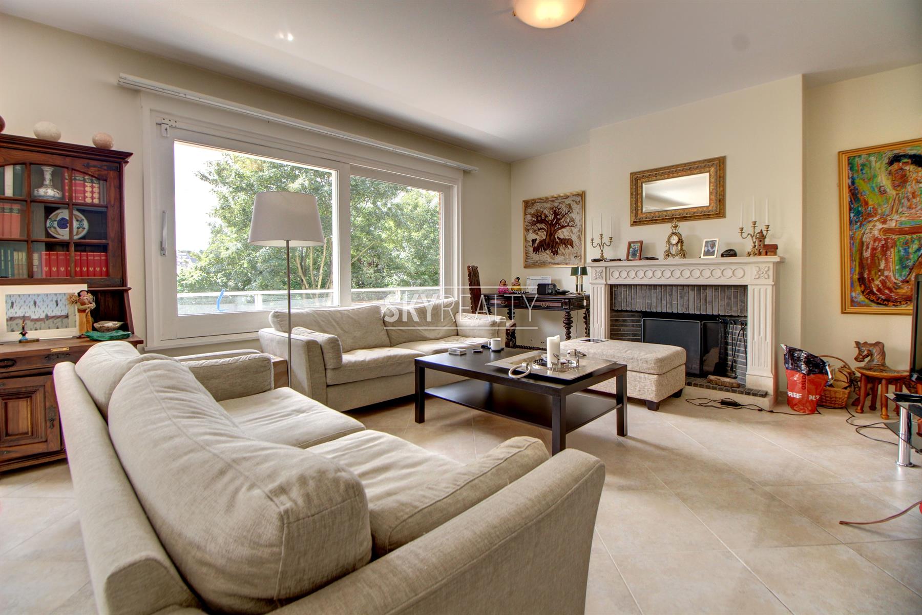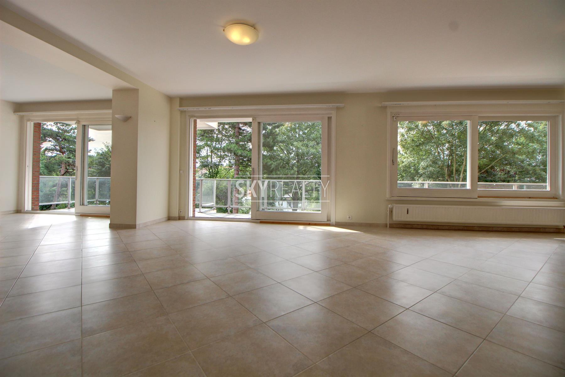 Dans un quartier résidentiel très recherché, Splendide Appartement 4 chambres de ± 180 m² avec terrasse et jolie vue. Il se compose comme suit: hall d'entrée (avec vestiaire), un grand living lumineux avec terrasse exposée sud-ouest jouissant d'une jolie vue sur les jardins, une spacieuse cuisine hyper équipée, 4 chambres, 1 SDB, 1SDD, 2 toilettes, placards, une cave, un garage box et un emplacement de parking. Un bien récemment rénové (nouveaux doubles vitrages, cuisine, SDB, SDD, etc.). Proximité immédiate des parcs, des transports en communs et des grands axes autoroutiers. Loyer : 2000€ + 300€ de charges (provision pour ch. communes + eau et chauffage). Localisation parfaite dans un quartier PREMIUM. Infos et visites: David: +32 495 511 555. ... Un cadre sécurisé, verdoyant et calme. Infos et visites: David: +32 495 511 555.