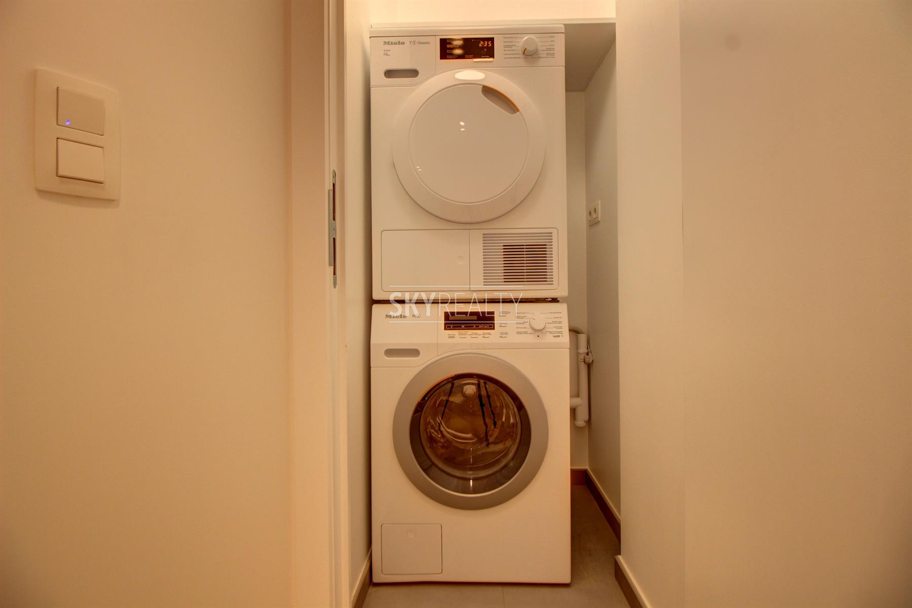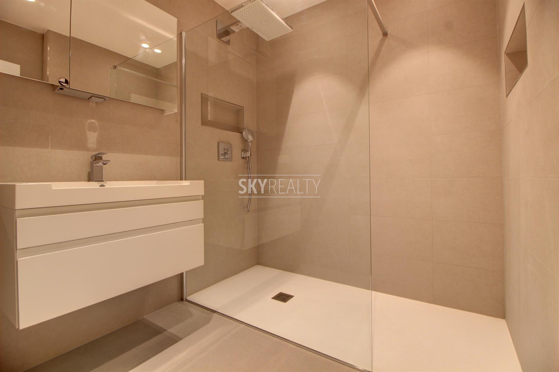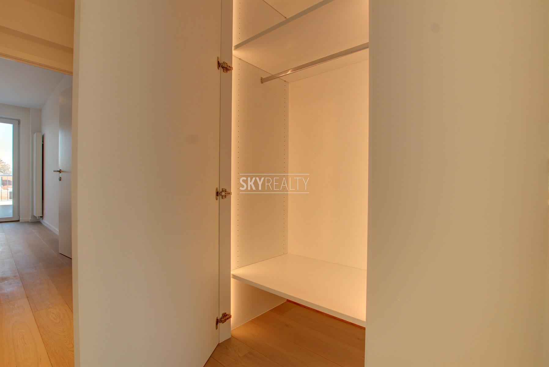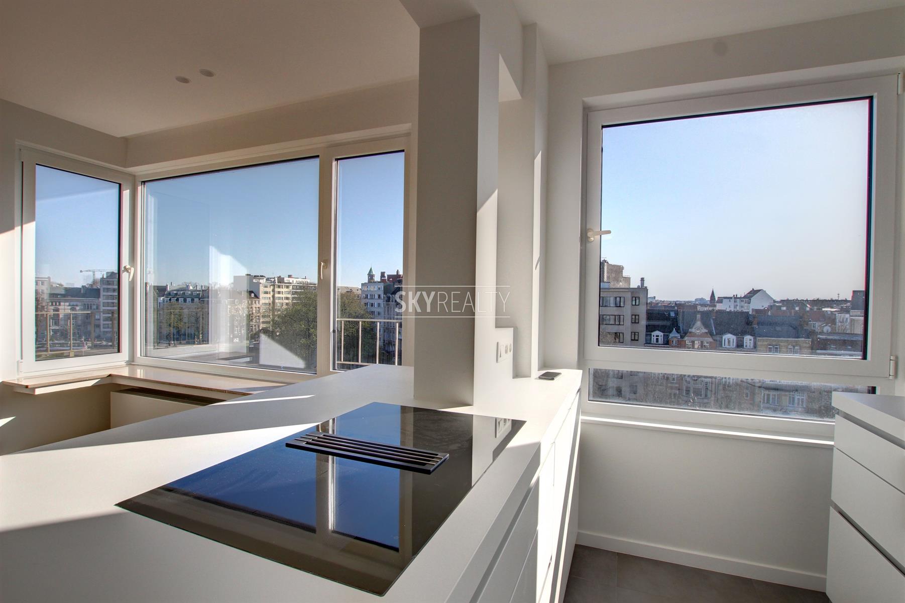 MONTGOMERY / AVEVUE DE TERVUREN: Ce splendide appartement de 95 m² au 6e étage sur 7 d'un immeuble de standing vous séduira par sa rénovation complète d'exception, sa localisation parfaite à coté de toutes les facilités, son exposition plein sud et ses jolies vues.. Il offre: un hall d'entrée avec vestiaire et rangement, un agréable living exposé plein sud, une cuisine américaine très haut de gamme (Bulthaup) et super équipée (électroménager 100% Miele: réfrigérateur-surgélateur, taque à induction avec hotte intégrée, four, micron-ondes, lave-vaisselle), un hall de nuit, deux chambres (16m² + 10m² + terrasse), une magnifique salle de bain (grande douche italienne de 90 cm x 200 cm), une toilette séparée, placards éclairés, une buanderie équipée avec machine à laver & séchoir (Miele), 1 cave. Jolie vue sur l'Avenue de Tervuren & le R.P. Montgomery. Beau parquet en chêne naturel, double vitrage, porte blindée, nouveaux radiateurs, volets électriques programmables (avec télécommandes) dans les 2 chambres + domotique: tous les luminaires (Delta Light) sont dimmables (système professionnel Dali) et actionnables/programmables avec tous les assistants vocaux (Amazon Alexa, Google Home, Apple HomePod) ou via les smartphones et tablettes. Première occupation après rénovation complète avec un architecte d'intérieur. À 20m du métro, des bus, trams & supermarché. Accès aisé aux autoroutes. Loyer + Charges: 200€ (provision pour eau, chauffage, communs). PEB: D-. Option meublé possible.