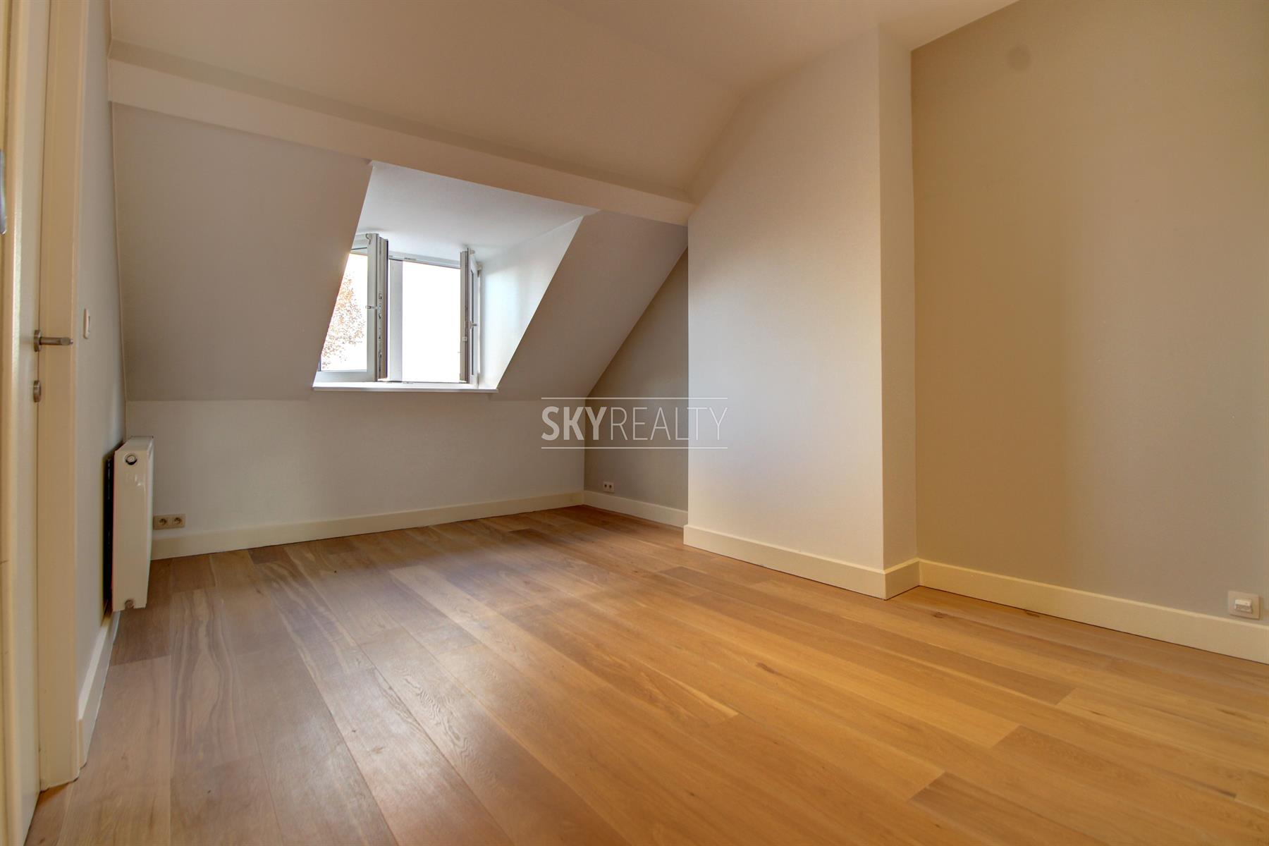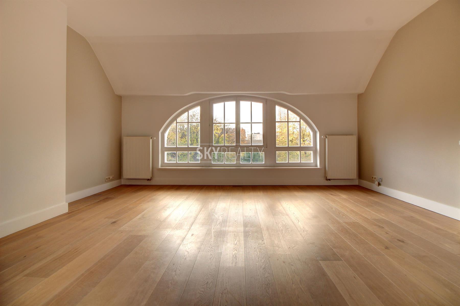 Montgomery / Brand Whitlock / Georges-Henri: Ce bel appartement duplex 2 chambres non meublé de 100m² aux derniers étages (3e et 4e / sans ascenseur) d'une belle maison de maître vous séduira par sa luminosité, la qualité de sa rénovation et sa localisation prisée, à côté des transports, des services et de toutes les facilités. Il se compose comme suit: au 3e étage: un hall d'entrée (porte blindée, parlophone), un agréable living de 32m² (jolie vue sur le parc), une cuisine ouverte équipée (réfrigérateur-surgélateur, taque vitro céramique, hotte, four, micro-ondes), une chambre (14m²) avec sa salle de bain en suite (bain/douche, lavabo, radiateur porte-serviette, un coin avec une connexion pour une machine à laver), une toilette séparée; au 4 étage: une grande chambre de 21m² (le lit et la garde robe sont inclus) avec une salle de bain en suite (bain/douche, lavabo, radiateur porte-serviette). Double vitrage et parquet en chêne partout. Magnifique cage d'escalier. Localisation idéale à deux pas de Montgomery, à côté des grands axes autoroutiers, des transports (métro, tram, bus) et des commerces (Georges Henri). 60€ de charges (50€ de forfait pour les communs et 10€ de provision pour l'eau), le chauffage (chaudière individuelle au gaz), l'électricité et les télécoms (internet/Tel./TV) sont à charge du preneur. Libre immédiatement. Pour toute information complémentaire: David au 0495 511 555 ou via le bouton *** Contacter par email *** de l'annonce.