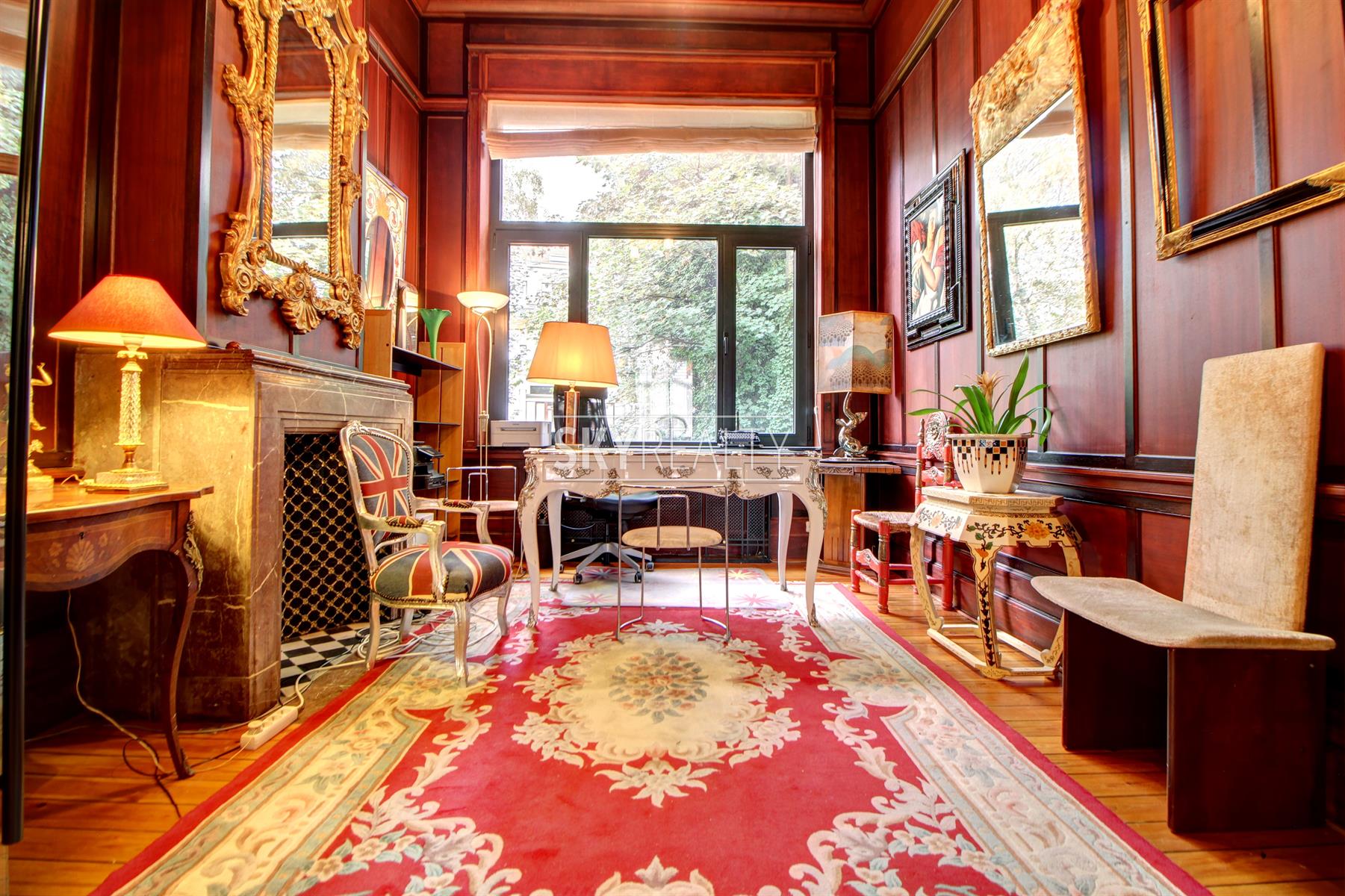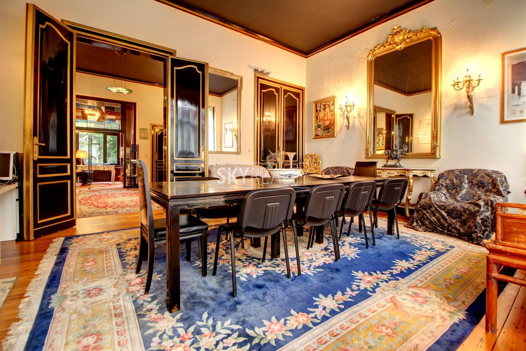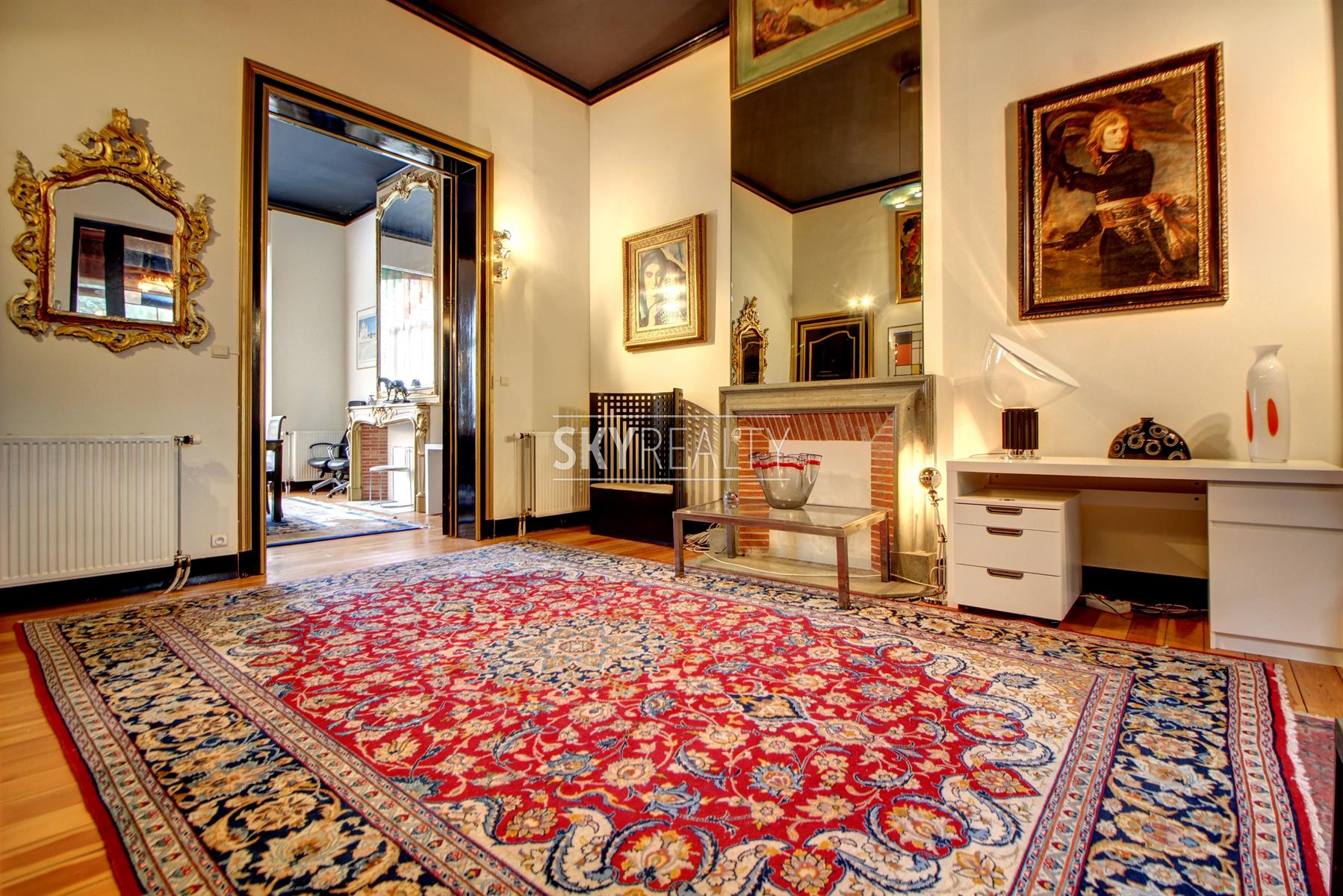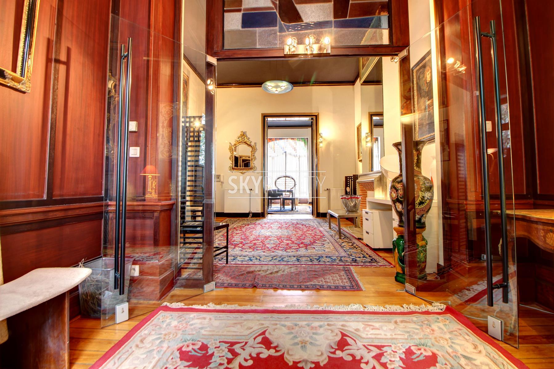 *** Loué *** SCHUMAN / QUARTIER EUROPEEN: idéalement situé sur une artère calme à 60m du Berlaymont, ce magnifique bureau meublé de ± 100 m² au 1er étage d'une belle maison de maître (conçue en 1911 par l'architecte François Lucas) vous séduira par ses beaux volumes, son atmosphere raffinée et son agréable terrasse ensoleillé. Il se compose comme suit: 3 pièces en enfilade sur toute la profondeur de la maison, une cuisine, une toilette avec lave main et une terrasse ensoleillée à l'arrière (au calme en intérieur d'ilot verdoyant). La pièce en façade avant dispose d'un balcon. Tous les éléments décoratifs d'époque ont été parfaitement conservés et restaurés (hauts plafonds, moulures, cheminées en marbre, miroirs, boiserie, porte d'entrée vitrée en fer forgé à volutes, etc.). Exposition idéale: soleil du matin au soir. Très belle décoration. Ancien bureau ayant été occupé par de prestigieuses sociétés (Arcelor Mittal, grands cabinets d'avocats, lobbies, sociétés en innovation et energies renouvelables, etc.). Parfait pour des professions libérales (avocats, consultants, etc.), représentations diplomatiques, Lobbies, sociétés ayant des intérêts avec les institutions européennes. Localisation Prime à 200m de Schuman, du Conseil, du Berlaymont, à coté du métro, de la gare, des axes autoroutiers, du Square Ambiorix & Parc du Cinquantenaire, des restaurants, des commerces, etc. Libre immédiatement. Loyer mensuel: 1750€ + 30€ (forfait eau + communs). Visites: David: 0495 511 555.