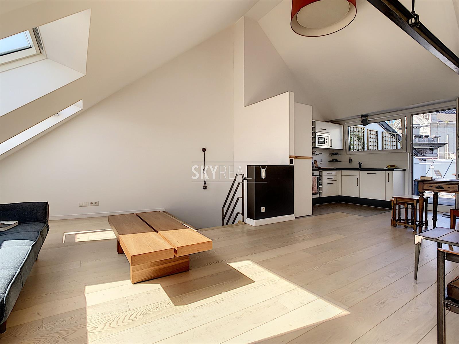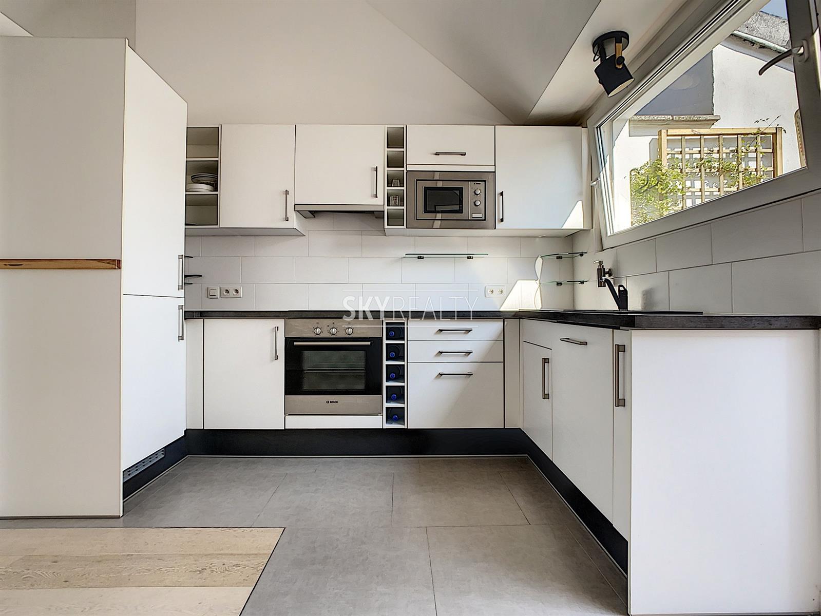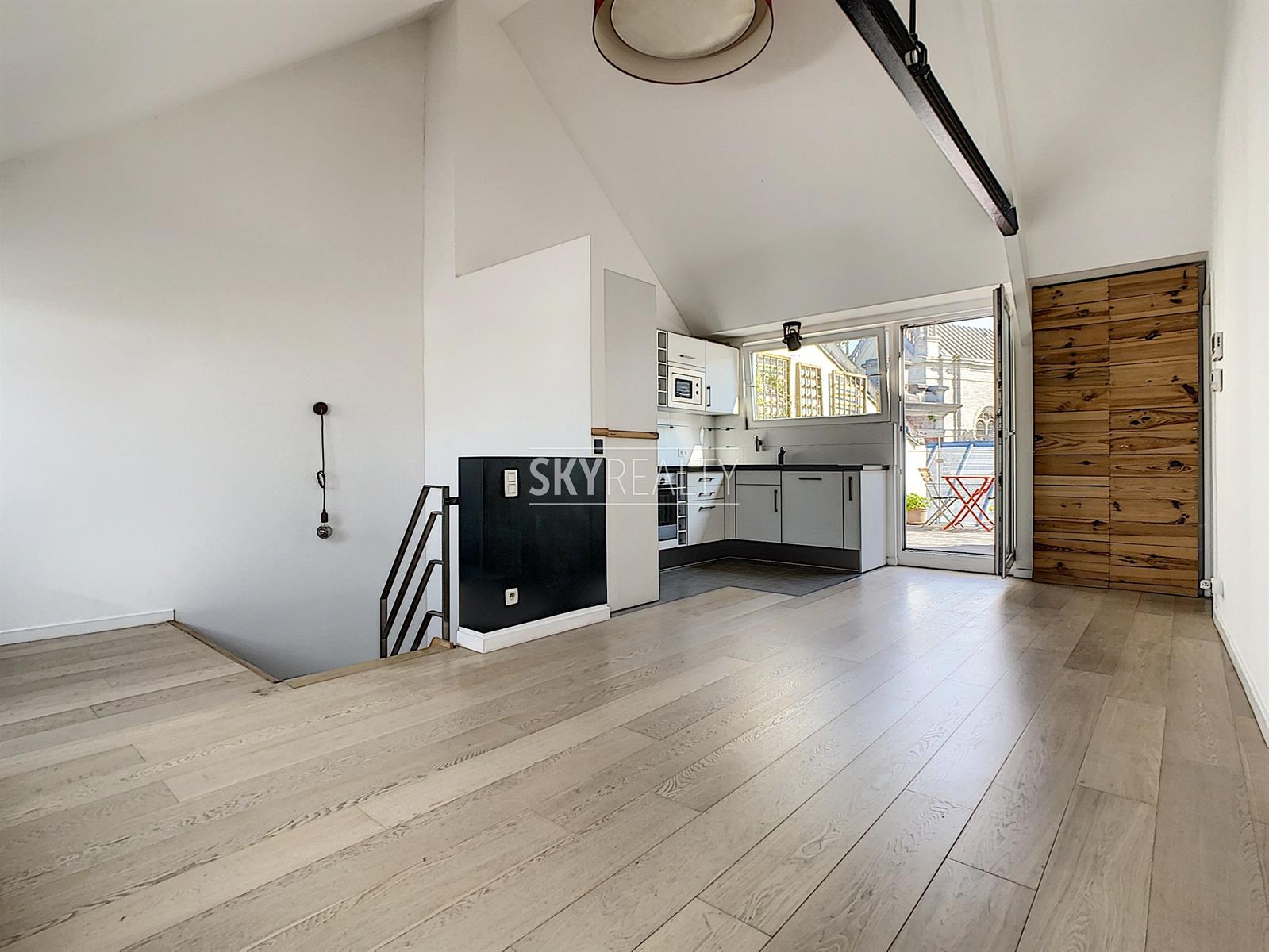 *** VENDU *** RUE SAINTE CATHERINE, À 20M DE LA PLACE DU MÊME NOM: Nous vous présentons en exclusivité ce splendide duplex penthouse (2 CH / 1 SDB / 1 SDD) de ± 110 m² (+ terrasse de 15 m²) au 4e et 5e étage (avec ascenseur) d'un petit immeuble complètement remis à neuf en 2015. Il offre: 4e étage: un hall d'entrée, une chambre à l'arrière (12 m²) avec une salle de bain en suite (bain, lavabo, radiateur porte-serviettes), une chambre en façade avant de 17,5 m² (possibilité d'en faire 2 chambres séparées), une salle de douche (douche, lavabo, radiateur porte-serviettes), une toilette séparée; 5e étage: un living traversant (belle luminosité) s'ouvrant vers une agréable terrasse, une cuisine ouverte super équipée (réfrigérateur-surgélateur, taque vitro-céramique, hotte avec extraction, lave-vaisselle, four et micro-ondes), une buanderie (option 2e toilette possible); en sous-sol: un espace pour les vélos, une grande cave avec prise de courant (recharge vélo électrique ok). Double vitrage, visiophone à chaque étage, beau parquet en chêne, électricité en conformité. Un appartement ne nécessitant aucun travaux, dans lequel l’emménagement peut être immédiat, parfait pour un célibataire, un jeune couple ou pour les investisseurs. Une petite copropriété bien entretenue de seulement 9 unités. PEB: C- ! Faible R.C./P.I. (seulement 551 € / 514 € !). Immeuble raccordé à la fibre optique Proximus ! Faire offre à partir de 450.000 €.