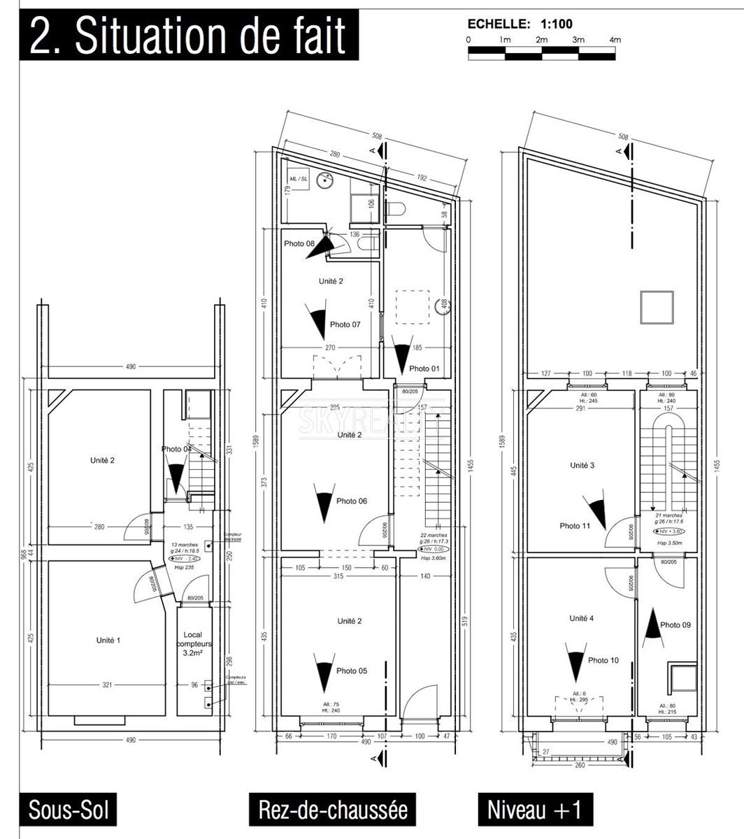 *** SOUS COMPROMIS / VISITES SUSPENDUES *** !!! REMISE EN VENTE !!! => FAIRE OFFRE MAIS SANS CONDITION SUSPENSIVE POUR LE CREDIT !!! LE BIEN EST EN INFRACTION URBANISTIQUE - ARRETE D'INHABILITE SUR LE BIEN (INSALUBRITE) !!! Obligation pour le futur acquéreur de régulariser le bien en revenant vers la situation actuelle connue à l'urbanisme = une maison de commerce (un rez-de-chaussée commercial et 1 logement unifamilial). Une maison 100% unifamiliale (famille ou colocation) ou 2 grands appartements duplex (avis favorable unanime de l'urbanisme) pourraient être envisagés via une demande de permis *** Nous vous présentons cette maison de commerce R+3 de ± 270 m² (caves et mezzanine incluses) qui vous offrira un excellent potentiel après RENOVATION COMPLETE. Localisation pratique à 100m du métro, à côté des commerces et de toutes les facilités. Elle offre (situation en infraction): RDC: Logement 1: app. 1 ch. (séjour, cuisine, ch., SDB, lavabo, WC) et à l'arrière, une cour couverte avec toilette (infraction); SOUS-SOL: 1 ch. (liée au rez-de-chaussée), 1 autre ch. (logement 2), une salle d'eau; 1ER ETAGE: logements 3 & 4: deux pièces & 1 cuisine (avec un coin pour la douche, pas de toilette); au 2E ETAGE: idem (logements 5 & 6); 3E ET. (sous les combles): logement 7: 1 app. 1 ch. (séjour avec cuisine, mezzanine, chambre séparée, SDB, lavabo et WC). Divers: Double vitrage, chaudière centrale au gaz, balcon au 1er étage. Compteurs: 2x gaz, 2x électricité.